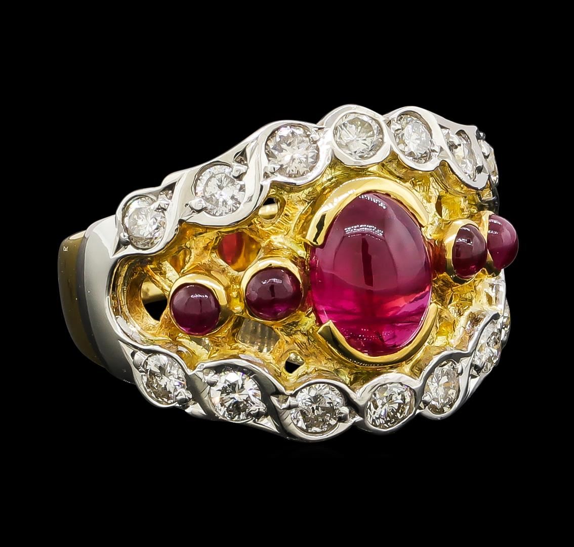 One ring featuring: 18KT Yellow Gold and Platinum containing Ruby with a total weight of 1.71ct and Diamonds with a total weight of 0.88ct. Total Weight of Ring: 8.2 grams.