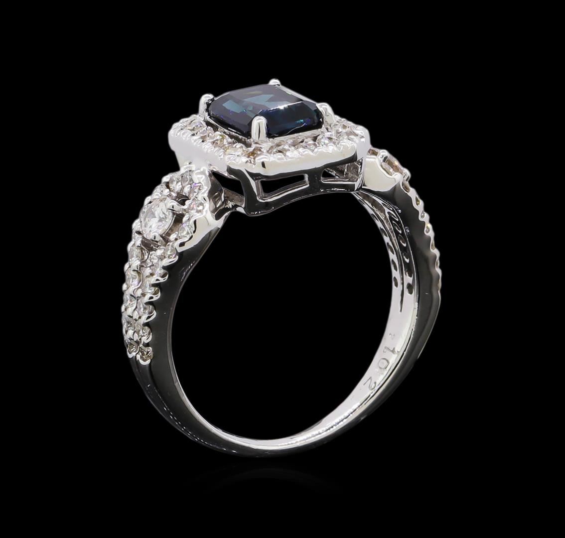 One ring featuring: platinum weighing 4.67 grams containing one sapphire center weighing 1.71ct and diamonds weighing 0.70ctw