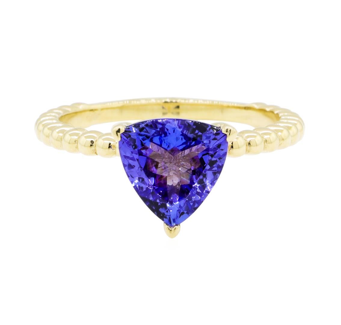 One lady's ring featuring: 14KT yellow gold weighing 2.8 grams containing one tanzanite weighing 1.71ct.