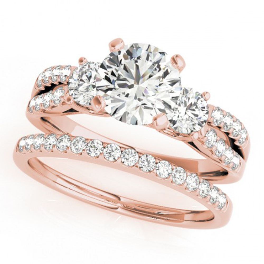 REF-299N2F - SKU: 32043 ---- 1.71 ctw VS/SI Diamond 3 Stone 2pc Set Wedding 14k Rose Gold