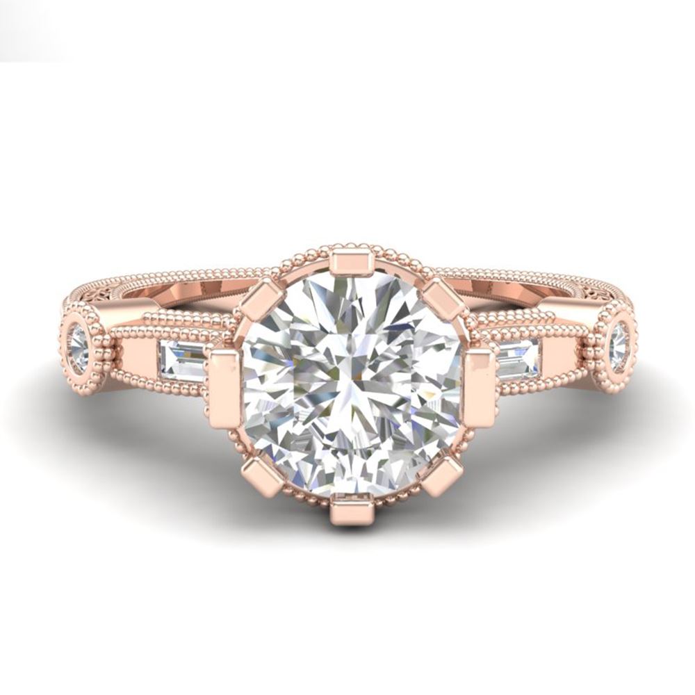 REF-442M5G - SKU: 37062 ---- 1.71 ctw VS/SI Diamond Solitaire Art Deco Ring 18k Rose Gold