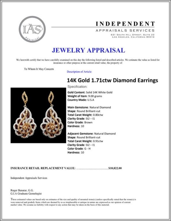 Regarding Appraised Jewelry and Loose Stones - Auctionfarm sends them out to a third party for Retail Replacement Value Appraisals, which are the most common. These types of evaluations are written for insurance needs. This would be the cost to replace the jewelry with an item of equal quality and kind, considered to be the current market price or the replacement value. This type of appraisal is done to protect you in the event of damage or loss of a valuable item. Our appraisals are conducted by independent 3rd Party appraisal firms that utilizes Certified GIA Gemologist. Appraisals should be used for verification of gemstone and/or metal weight, size, and grade only, not actual value. Appraisal value should be considered for insurance purposes only, not actual value, as price varies greatly from retail locations thru out the world. Items should not be purchased with the expectation to resell for appraisal price, or for profit.