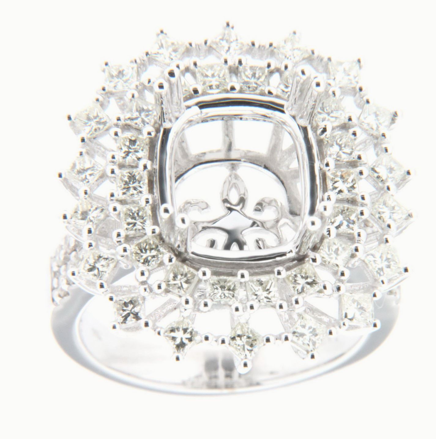 REF-178X3R - JF400716 ---- 1.72 CTW White Round Diamond & Princess Diamond Semi Mount Ring 14K White Gold