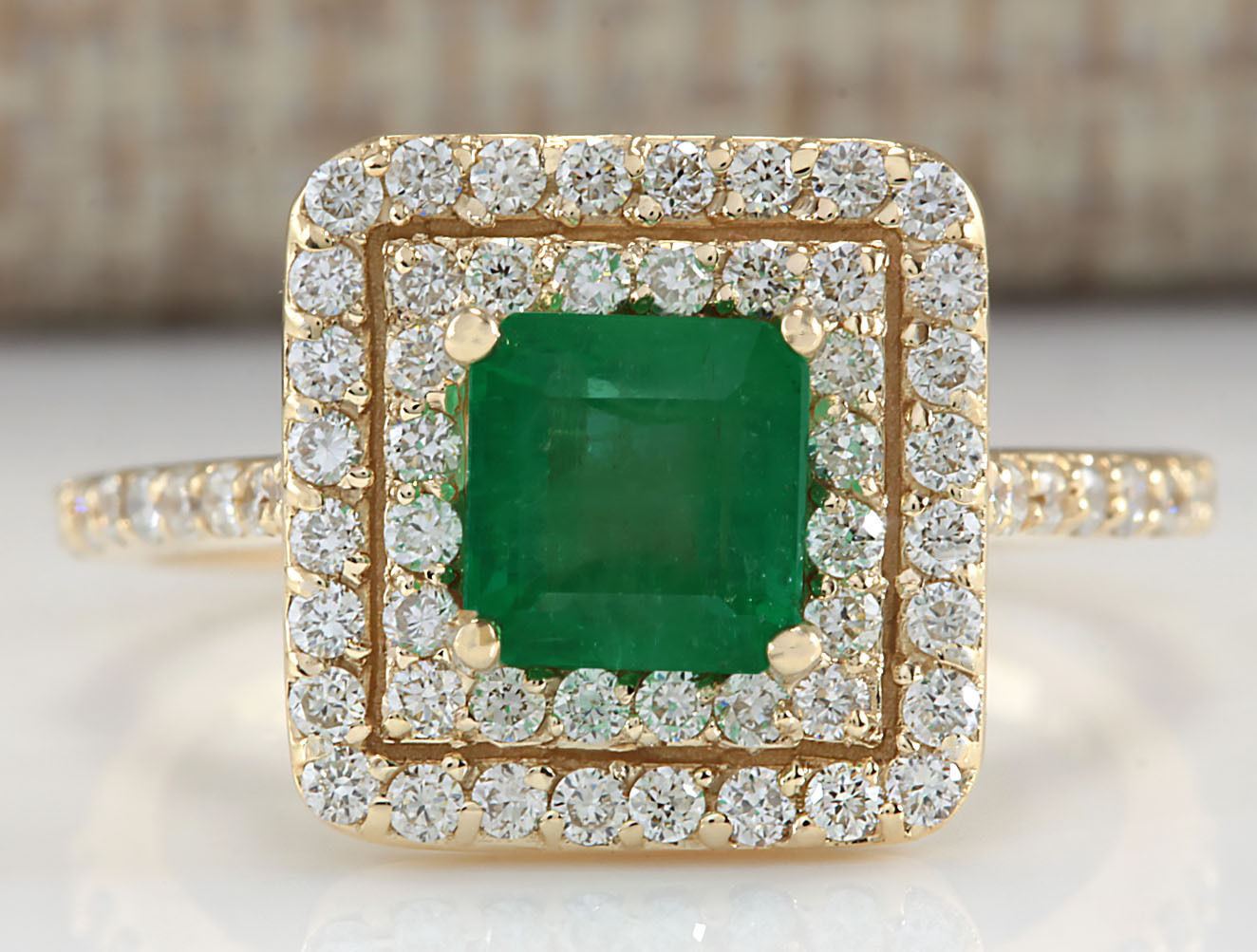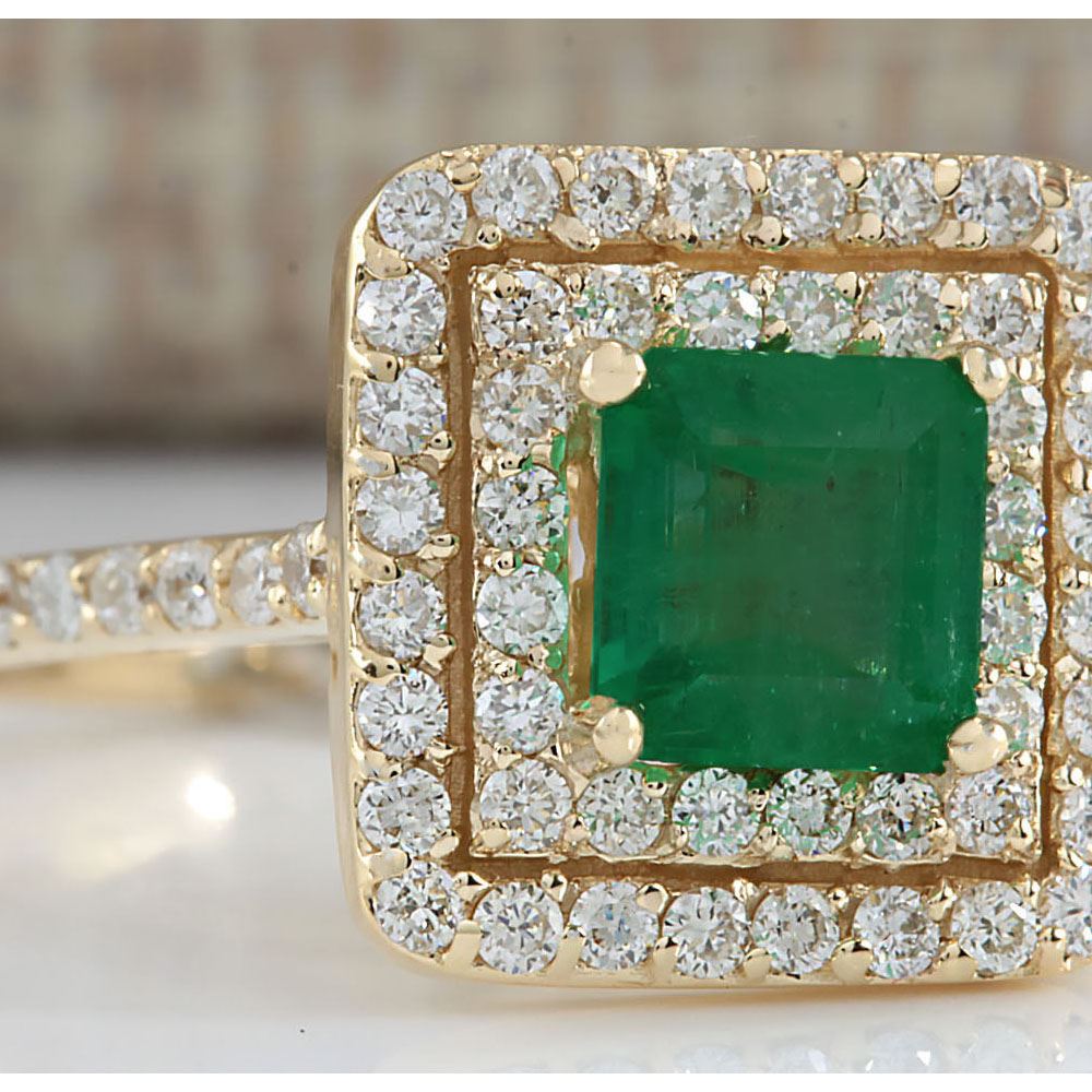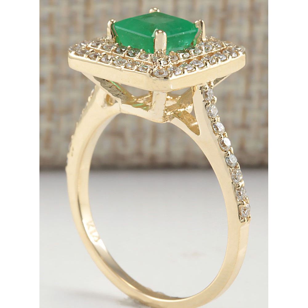 1.72 CTW Natural Emerald And Diamond Ring 14K Solid Yellow Gold