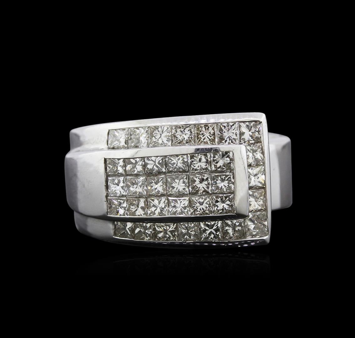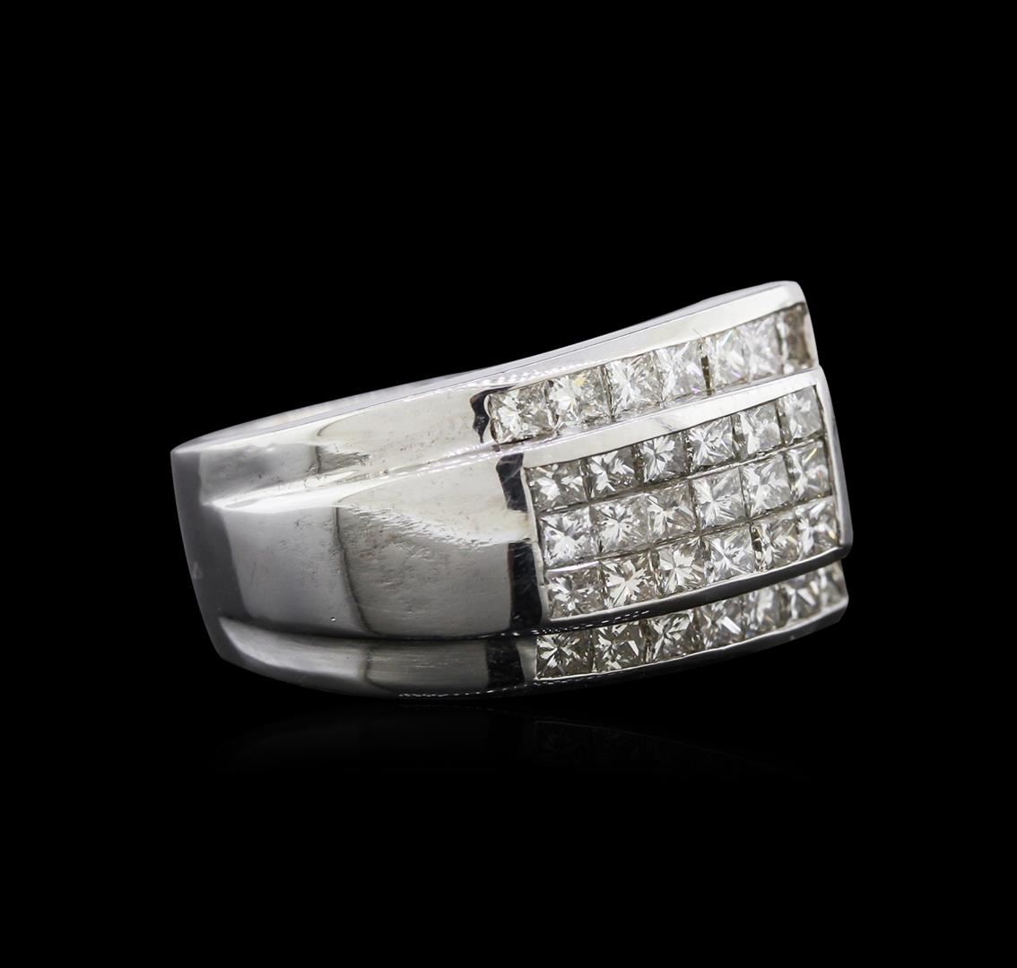 One electronically tested 14KT white gold ladies cast diamond ring with a bright polish finish. Identified with markings of "14K". Condition is new. Containing: Thirty-Five invisible set princess cut diamonds, measuring 2.00 x 2.00 x 1.50mm (depth est.) approximate total weight of 35 Stones = 1.72ct. Clarity: VS-2. Color: H - I, Cut is Good. Diamonds are graded in the mounting, unless otherwise stated. Total Weight of Diamonds 1.72ct. Total Weight of Ring 9.50 grams. GGL Appraised at $3,510.00.