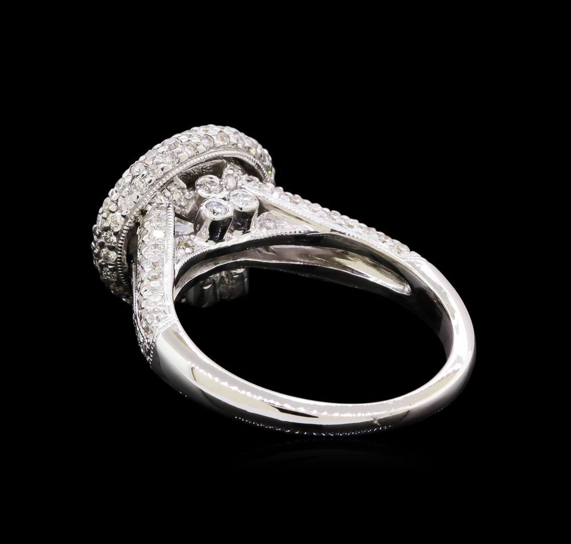 One electronically tested 18KT white gold lady's combination cast & assembled split shank wedding ring with a double halo with a bright polish with milgrain detailing finish. The featured lady's ring has a shank measuring 2.0 millimeters in width. Identified with markings of "18K". Condition is new, good workmanship. Containing: One prong set round brilliant cut diamond, measuring 5.50 - 5.43 x 3.72mm (depth est.) approximate weight of 0.70ct. Graded in the setting. Clarity: I-1. Color: H - I. Cut Very Good Six bezel set round brilliant cut diamonds, measuring 1.60 - 1.50 x 0.93mm (depth est.) approximate total weight of 6 Stones = 0.08ct. Graded in the setting. Clarity: SI-1 to SI-2. Color: G - Very Good One Hundred Eighty-Two prong set round brilliant cut diamonds, measuring 1.15 - 1.00 x 0.65mm (depth est.) approximate total weight of 182 Stones = 0.94ct. Graded in the setting. Clarity: SI-1 to SI-2. Color: G - I. Cut Good. Total Weight of Diamonds 1.72ct. Total Weight of Wedding Ring 7.50gm. GAS Appraised at $8,620.00.