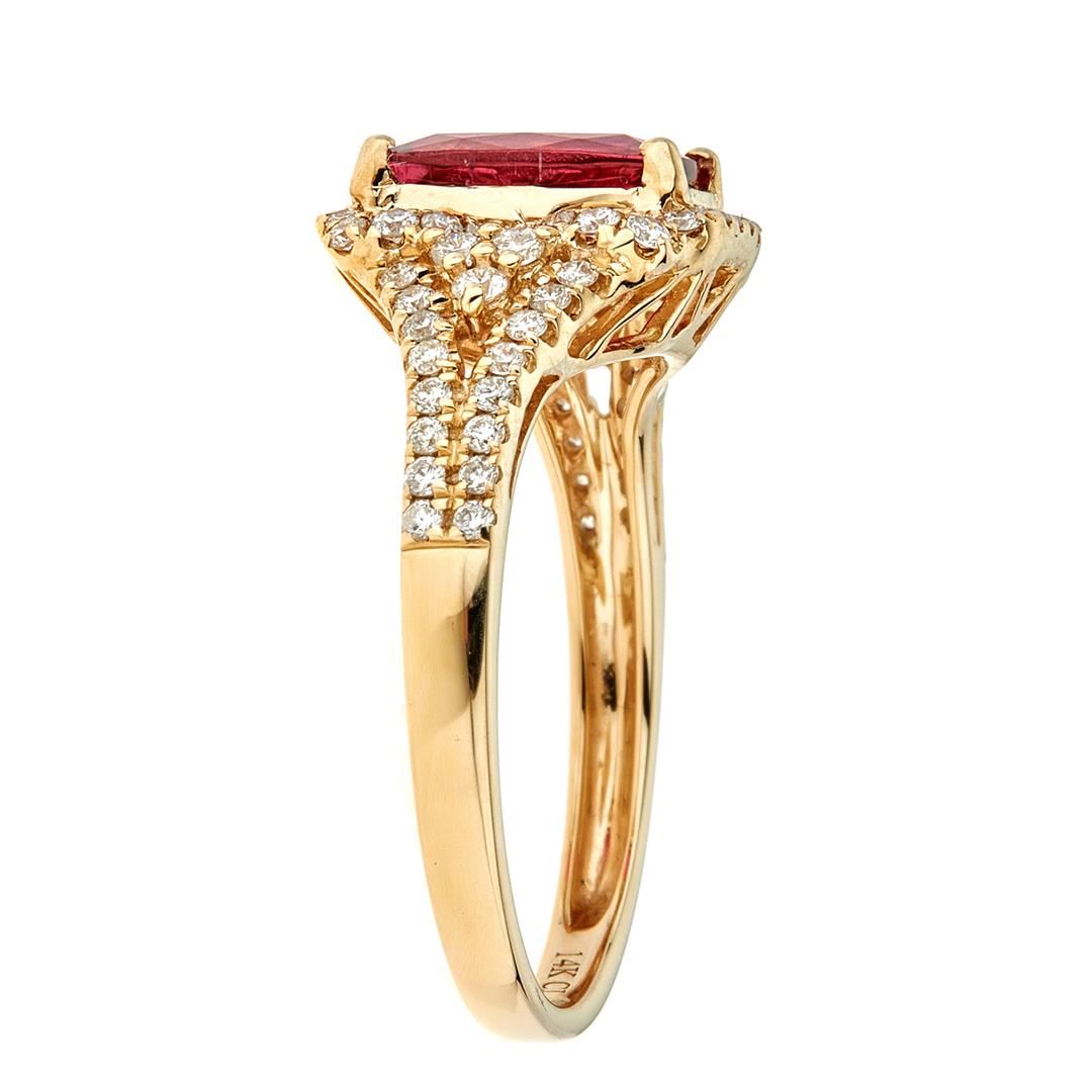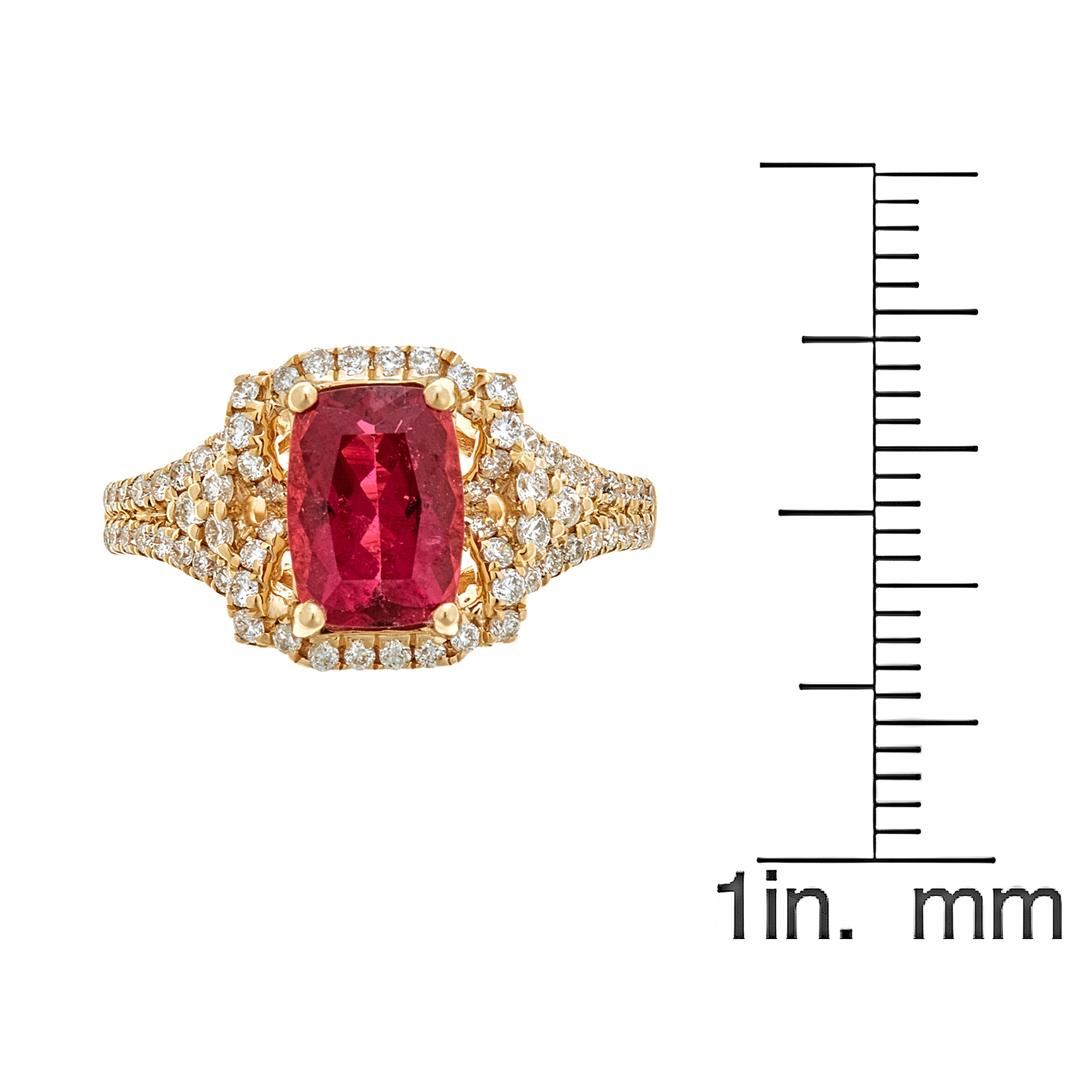 One lady's ring featuring: 14KT yellow gold weighing 3.22 grams containing one rubellite weighing 1.72ct and diamonds weighing 0.50ctw.