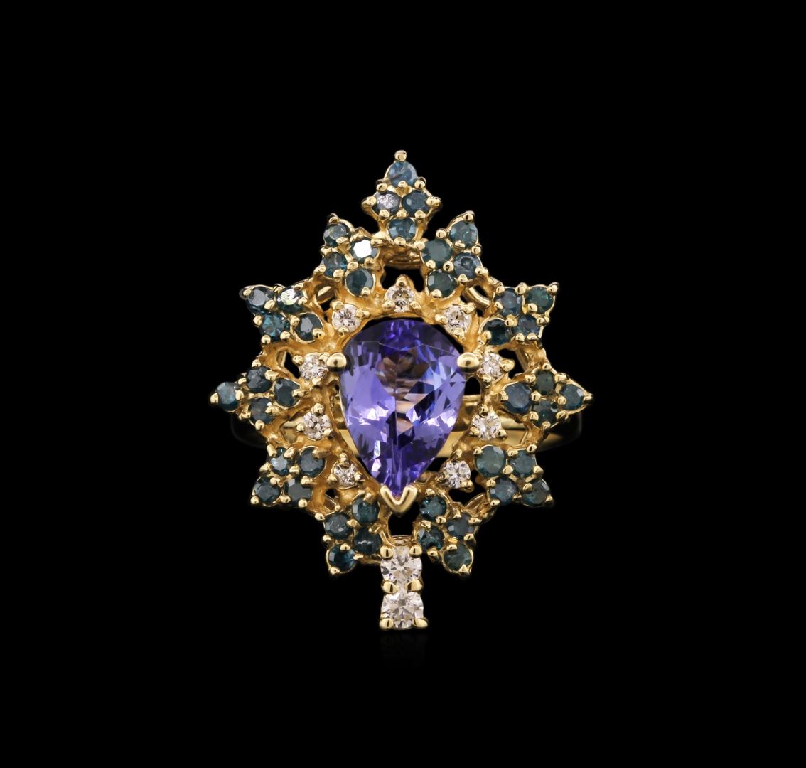 One ring featuring: 14KT yellow gold weighing 7.00 grams containing one tanzanite center stone with a total weight of 1.72ct and 51 diamonds with a total weight of 0.89ct.