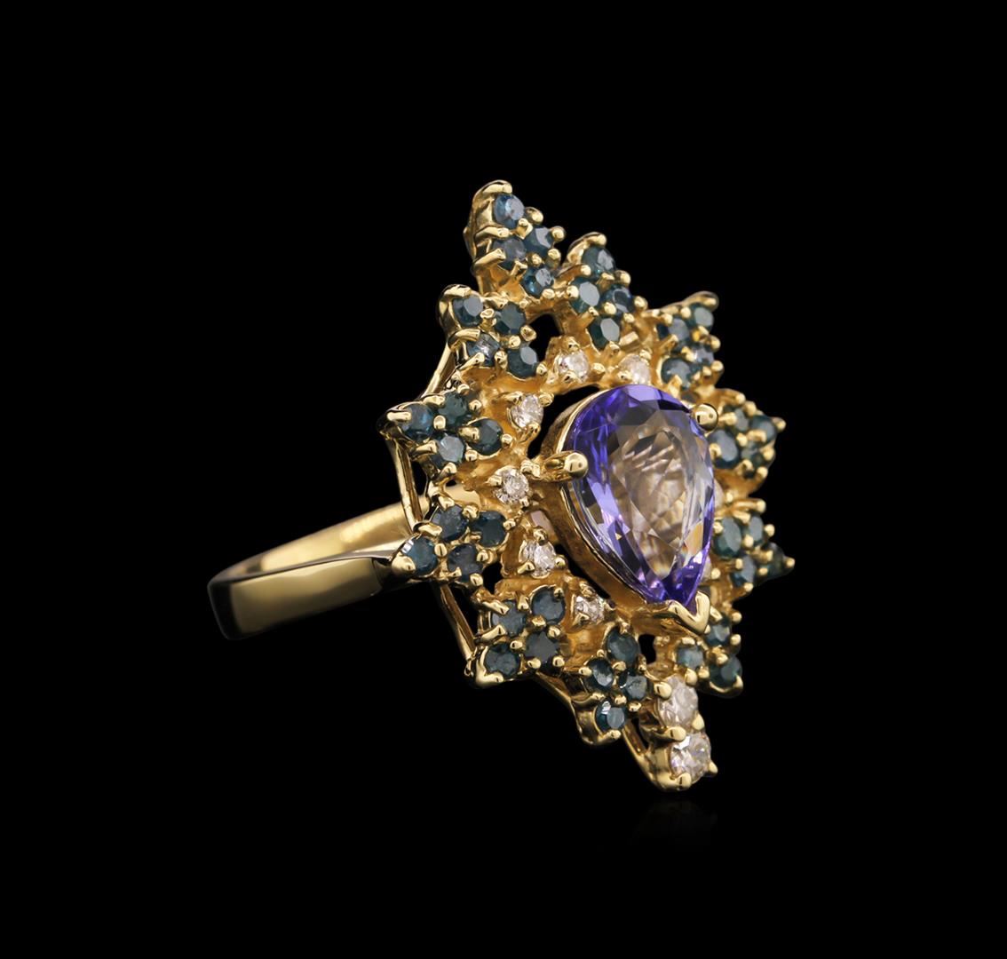 One ring featuring: 14KT yellow gold weighing 7.00 grams containing one tanzanite center stone with a total weight of 1.72ct and 51 diamonds with a total weight of 0.89ct.