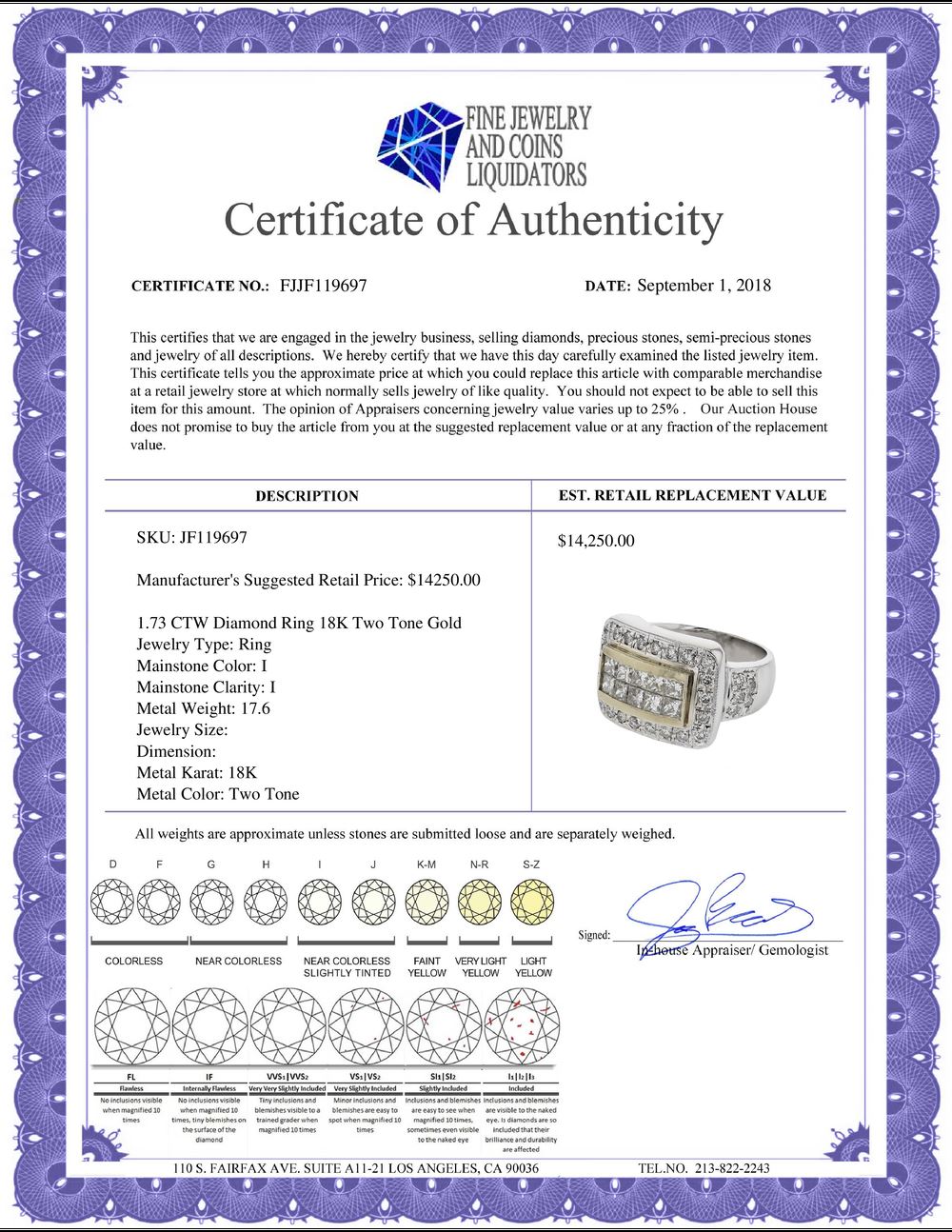 All Gia and EGL Diamonds are subject to availability due to consignors’ terms with us.