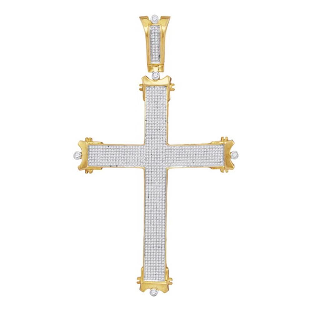 REF-89N9F- SKU: GD67969 ---- 1.73 CTW Mens Diamond Roman Cross Charm Pendant 10KT Yellow Gold