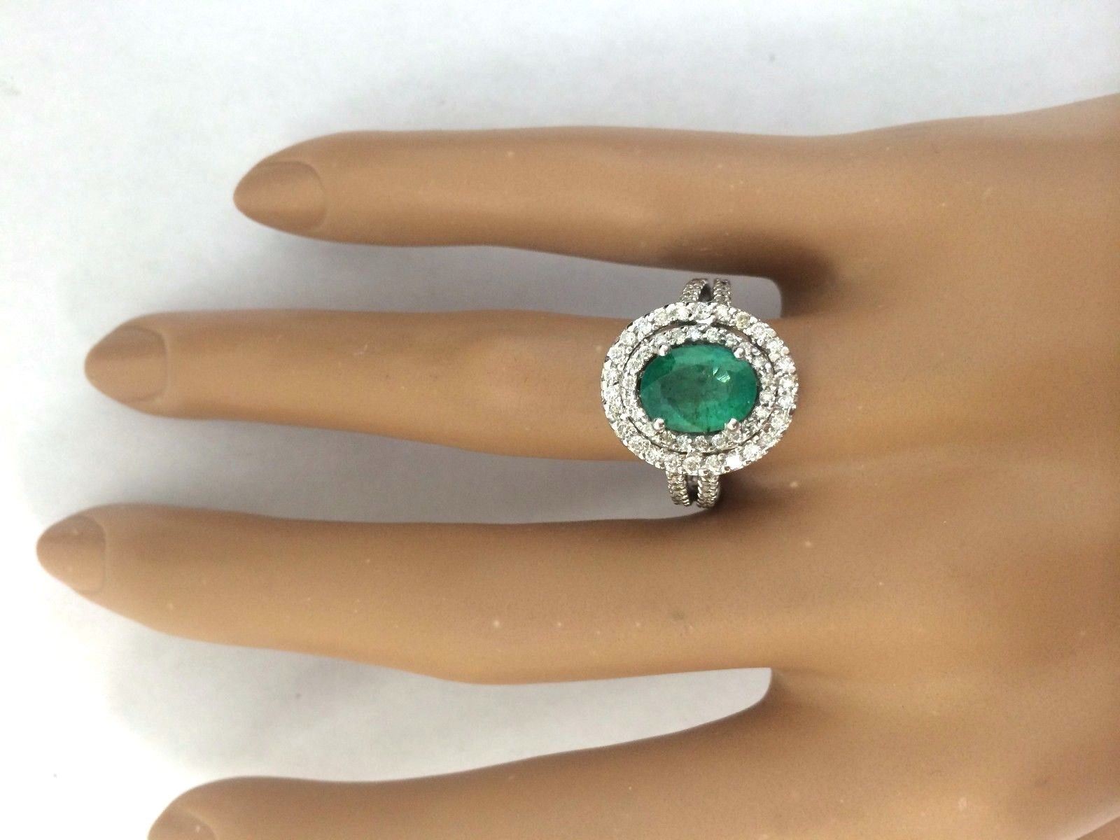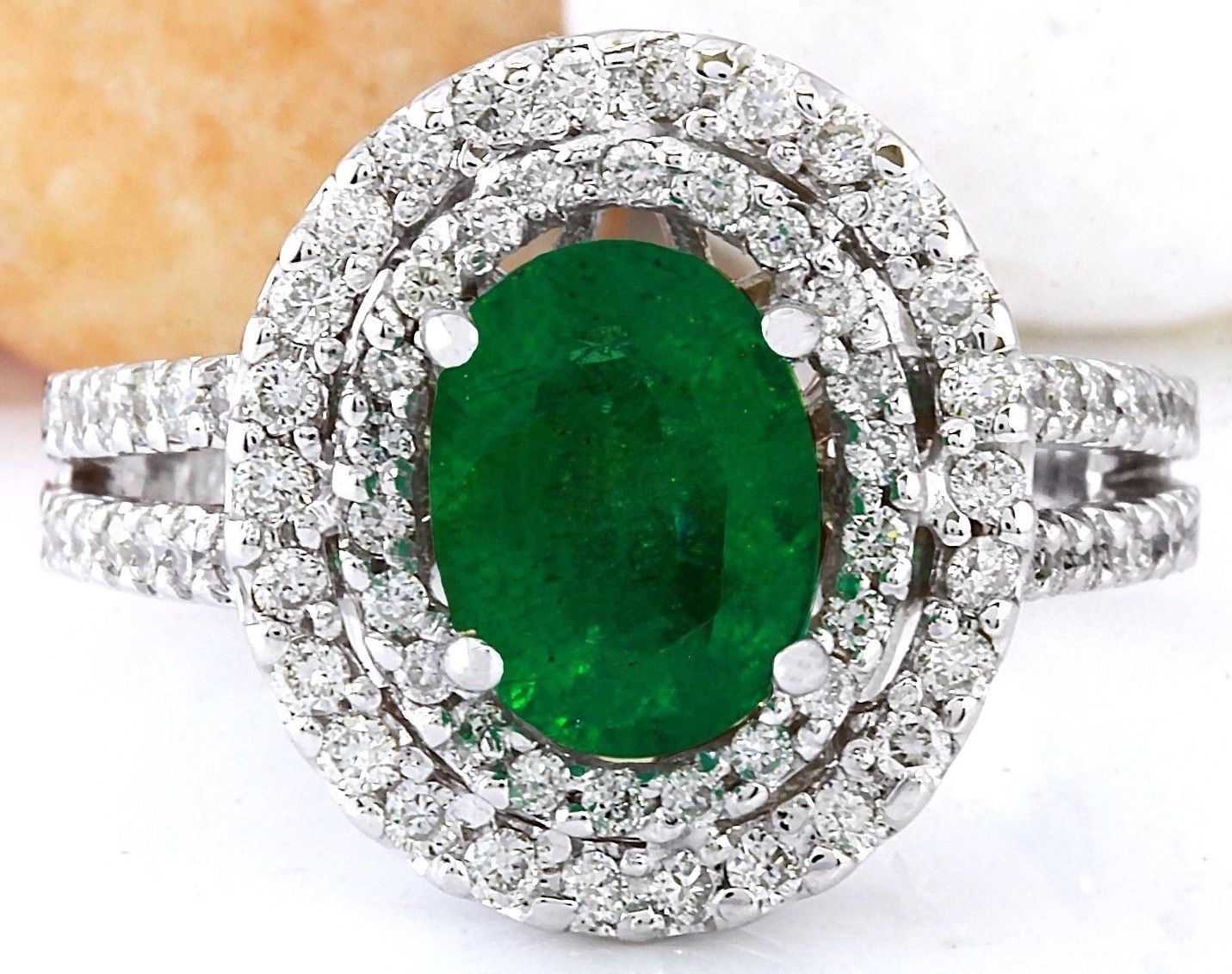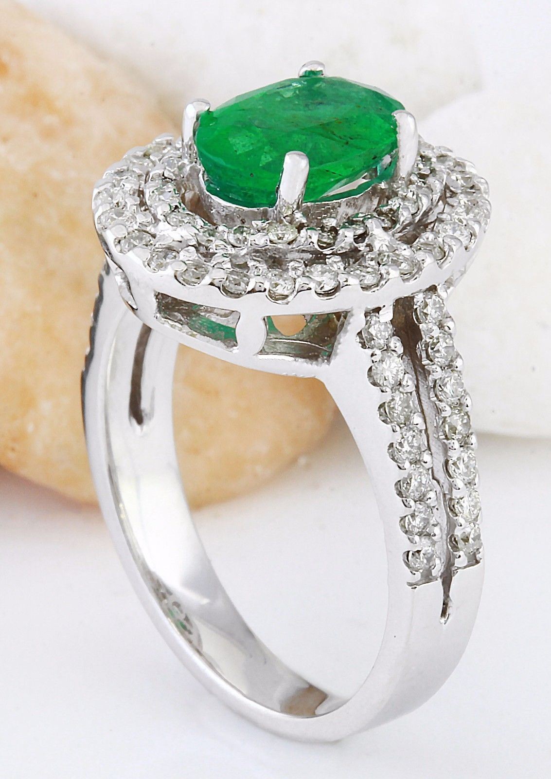 1.73 Carat Natural Emerald 14K Solid White Gold Diamond Ring