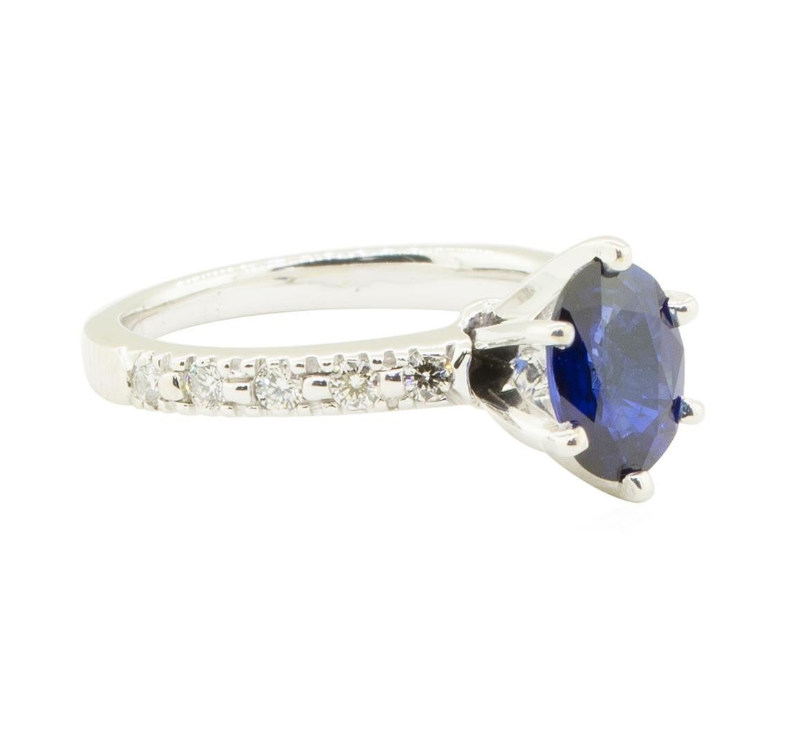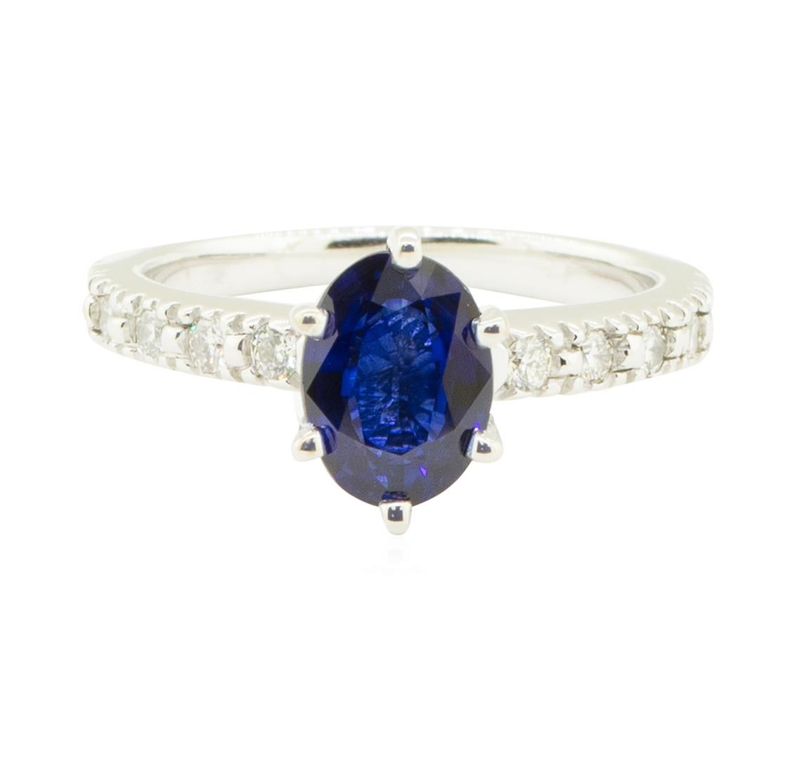 One ring featuring: 14KT white gold weighing 3.4 grams containing one blue sapphire weighing 1.23ct and diamonds weighing 0.50 ctw.
