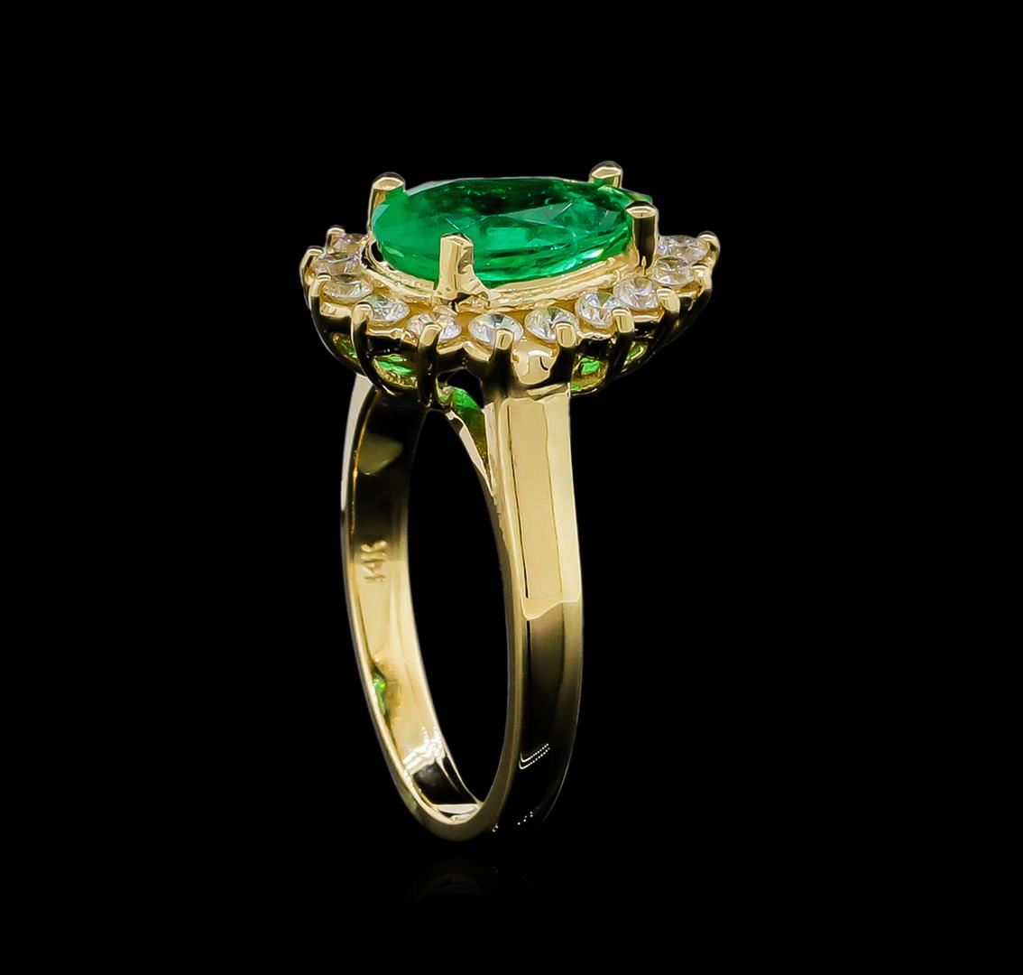 One ring featuring: 14KT yellow gold weighing 5.41 grams containing one emerald with a total weight of 1.73ct and side diamonds with a total weight of 0.55ct.