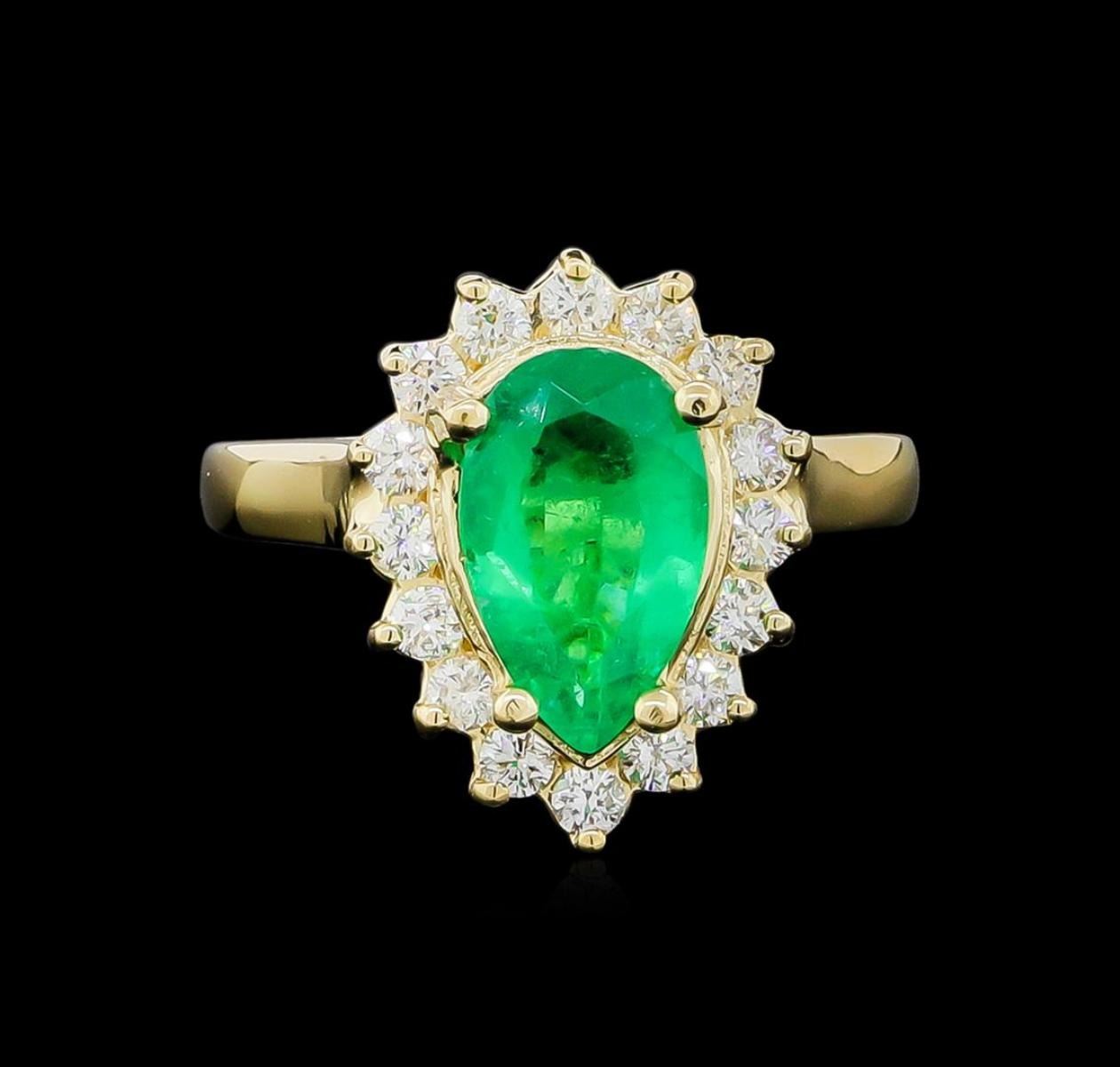 One ring featuring: 14KT yellow gold weighing 5.41 grams containing one emerald with a total weight of 1.73ct and side diamonds with a total weight of 0.55ct.