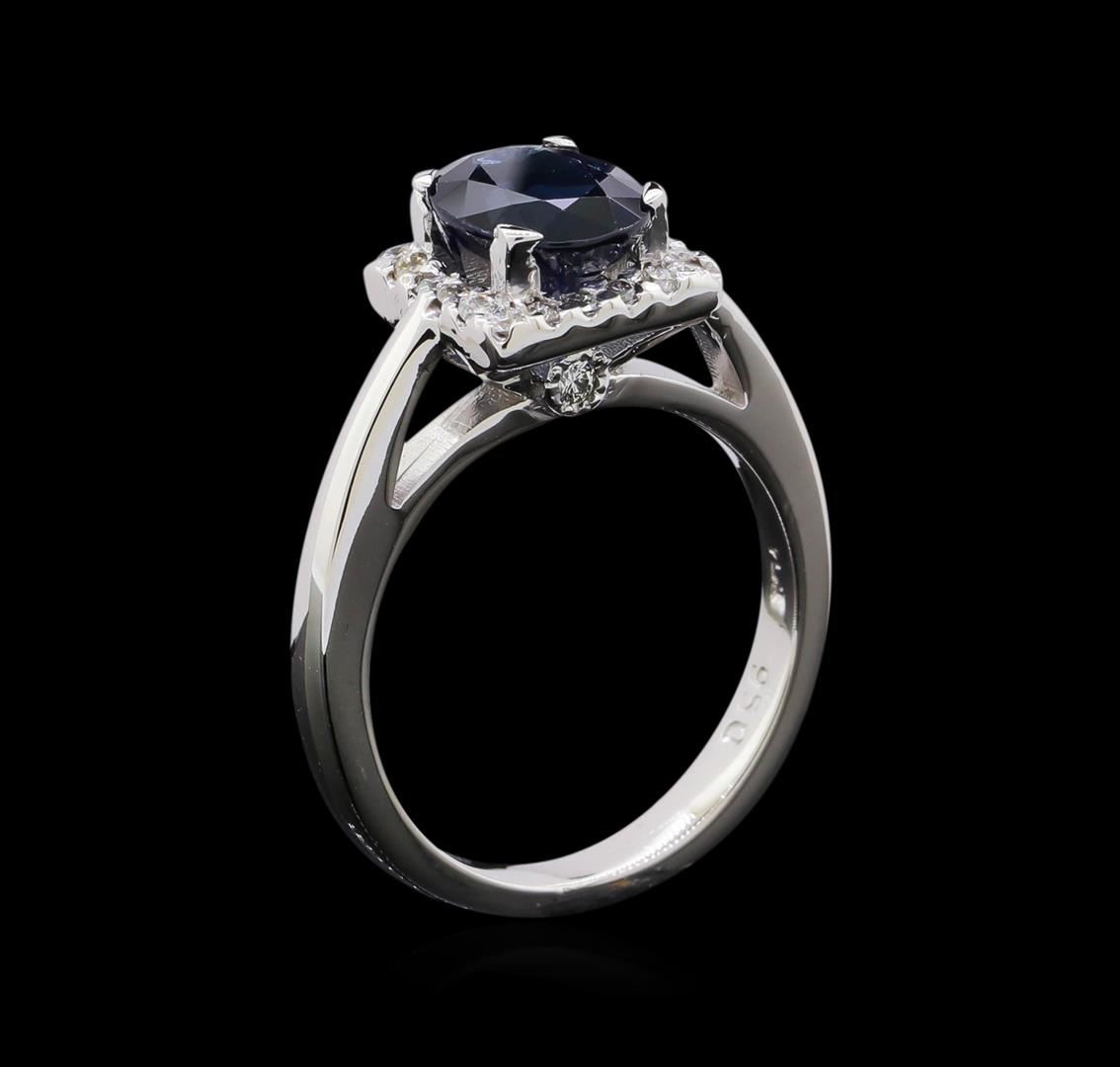 One ring featuring: platinum weighing 6.50 grams containing one sapphire center weighing 1.73ct and diamonds weighing 0.35ctw.