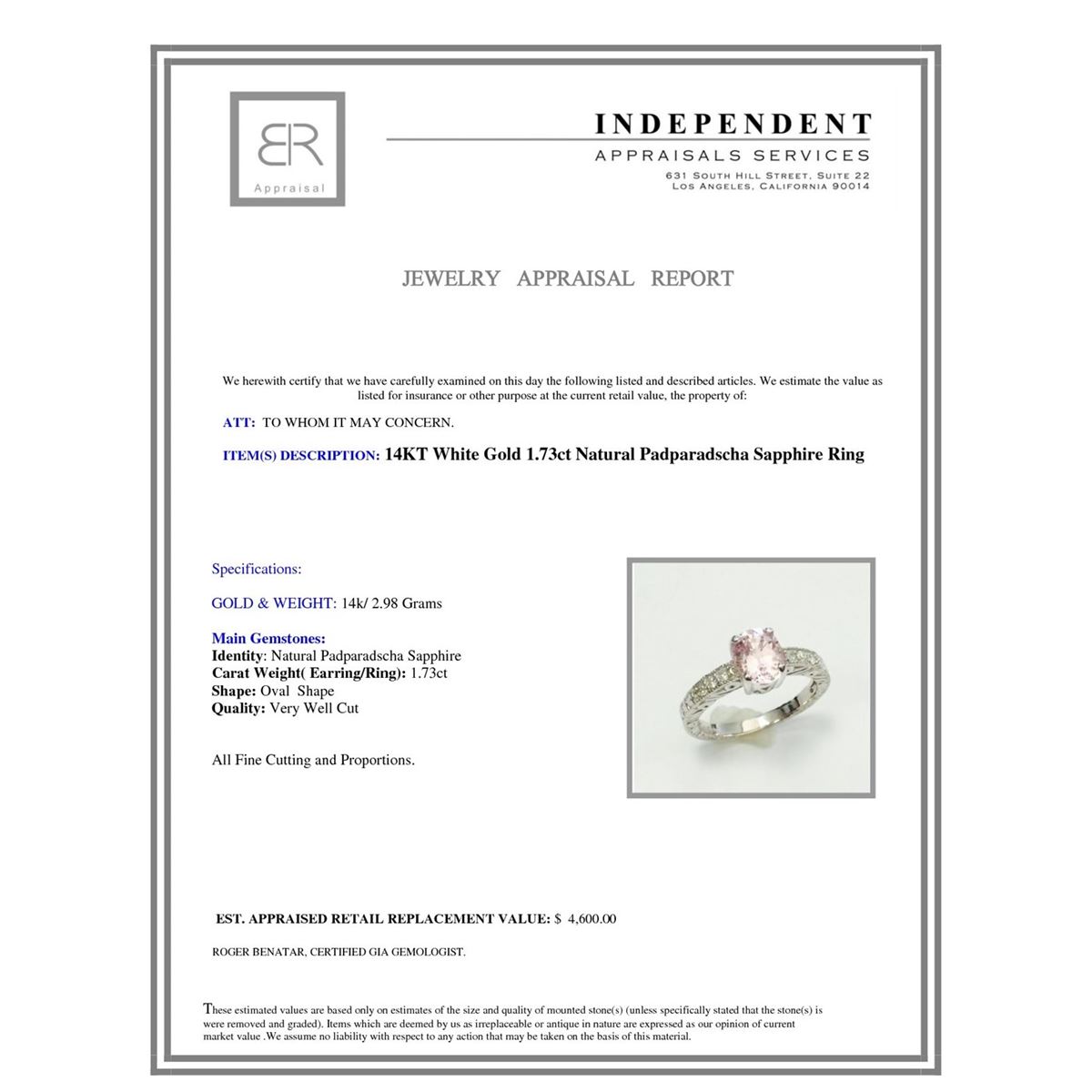 14K WHITE GOLD NATURAL CEYLON PADPARADSCHA SAPPHIRE RING: 2.98GRAM/PADPARASCHA SAPPHIRE:1.73CT/DIAMOND:0.12CT/#GVR1316