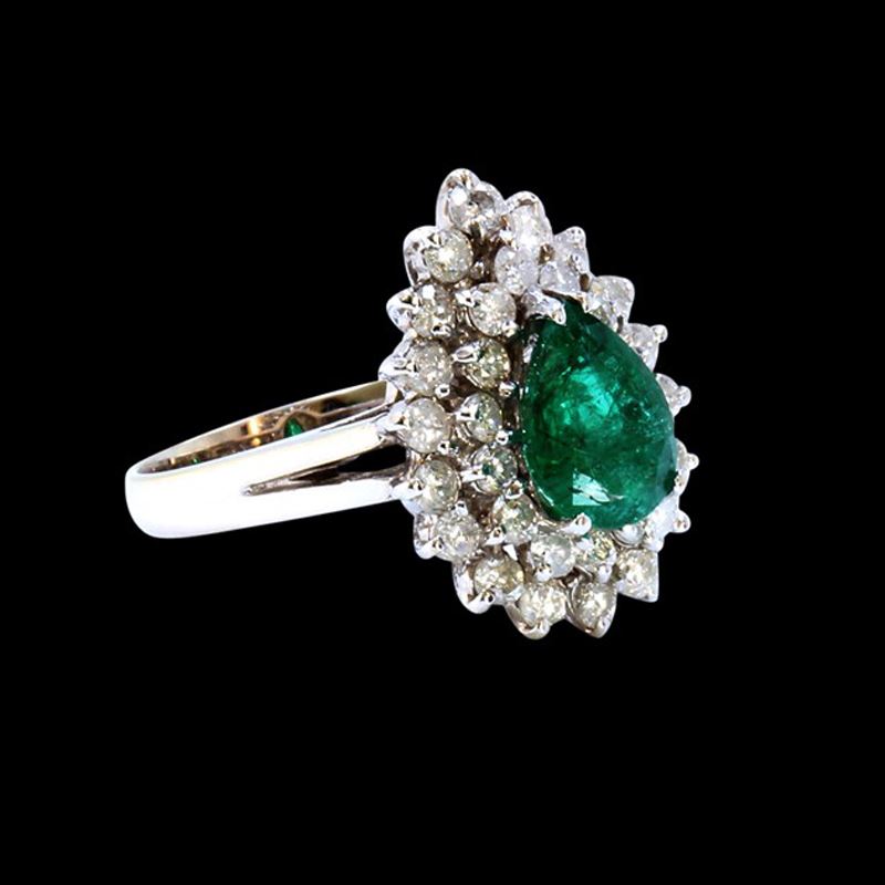 18K WHITE GOLD NATURAL COLUMBIAN EMERALD RING:5.52GRAM /EMERALD: 1.73CT/DIAMOND :1.33CT/#GVR1250