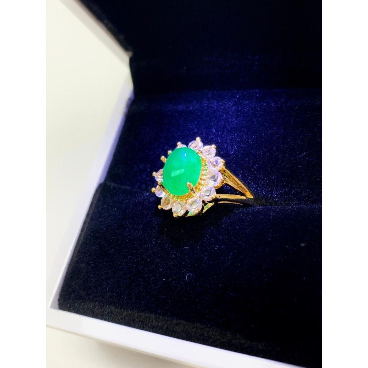 1.73ct Oval Cut Nephrite Jade set in 10K Gold Plated Ring The stone of this ring has been left untreated, signified by the nebula like patterns layered within.Â