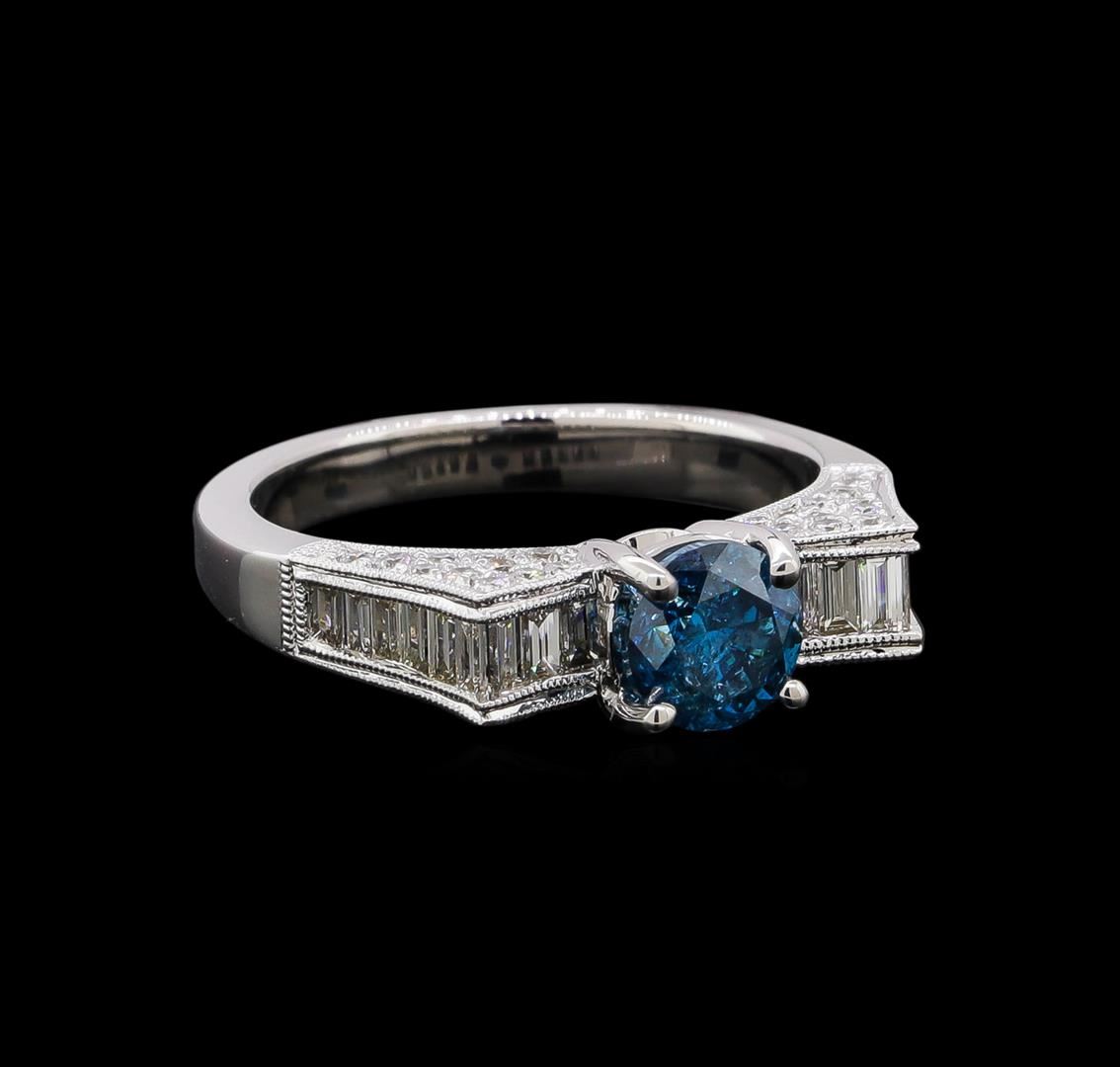 One ring : 18KT white gold weighing 5.6gm containing one blue diamond with a total weight of 0.89ct and diamonds weighing 0.85ctw.