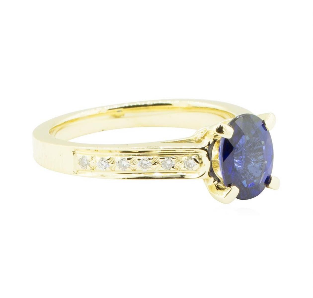 One ring featuring: 14KT yellow gold weighing 4.3 grams containing one blue sapphire 1.59ct and diamonds weighing 0.15ctw.