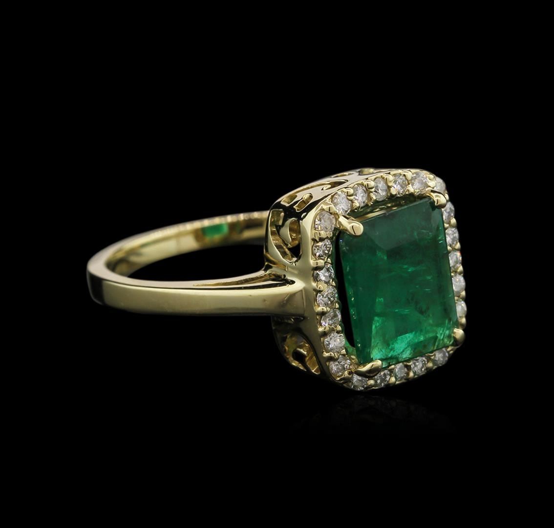 One ring featuring: 14KT yellow gold weighing 3.21 grams containing one emerald center stone with a total weight of 1.74ct and 24 diamonds with a total weight of 0.23ct.