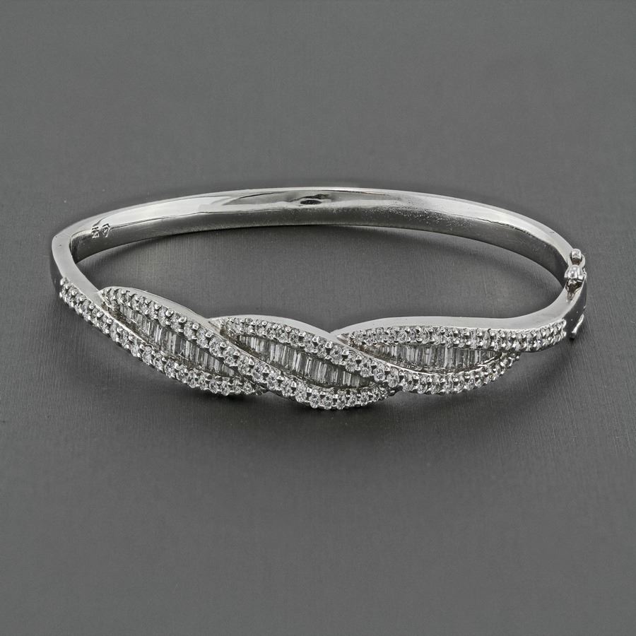 1.74 ctw F, SI2-I1 Channel Prong Pave Set Diamond Bangle Bracelet 14Kt White Gold 15.97 gms