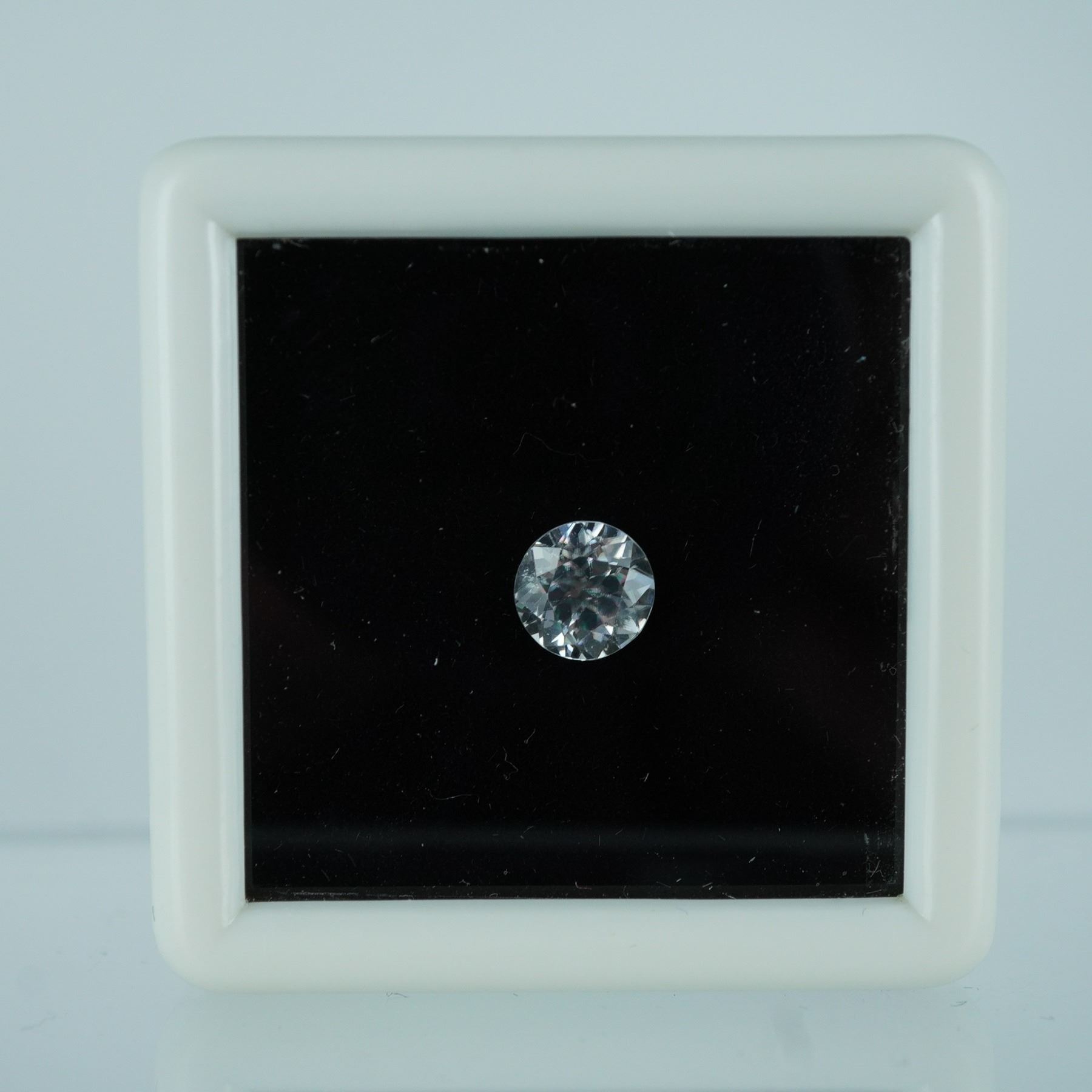 This brilliant white zircon gemstone features a classic round cut, offering exceptional sparkle and clarity. Known for its high refractive index and natural luster, white zircon is a popular choice for those seeking an elegant and radiant stone with diamond-like brilliance. It is presented in a protective display case, ensuring secure storage and presentation.
