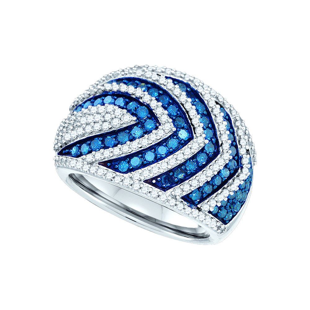 REF-129N9Y ---- 1.75 CTW Blue Colored Diamond Cocktail Ring 10K White Gold - SKU: GD82039
