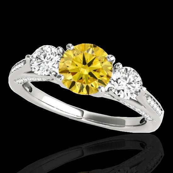 REF-236X4T -35356 ---- 1.75 CTW Certified Si/I Fancy Intense Yellow Diamond 3 Stone Ring 10K White Gold ---- Luxury Designer Brand Ring Appraised at $15,600 Certificate Number US35356 10k White gold, Ring Size is 7, Ring measuring approx. Uniform, weighing in total approx. 4.4 grams. Made in the USA and is stamped 10k, Main stone 1 carat total weight containing 1 pieces of Intense Fancy Yellow color with SI quality Round shape cut Diamond , Stone #2 0.75 carat total weight containing 40 pieces of H-I color with VS/SI quality Round shape cut Diamond