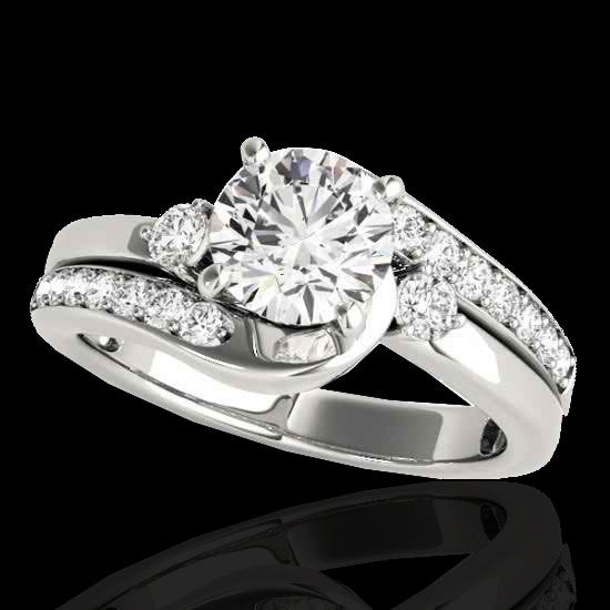 35097 - REF-218X2R ---- 1.75 CTW H-SI/I Certified Diamond Bypass Solitaire Ring 10K White Gold ---- Luxury Designer Brand Ring Appraised at $13,200 Certificate Number US35097 10k White gold, Ring Size is 7, Ring measuring approx. Uniform, weighing in total approx. 5 grams. Made in the USA and is stamped 10k, Main stone 1.25 carat total weight containing 1 pieces of H-I color with SI/I quality Round shape cut Diamond , Stone #2 0.5 carat total weight containing 16 pieces of H-I color with VS/SI quality Round shape cut Diamond