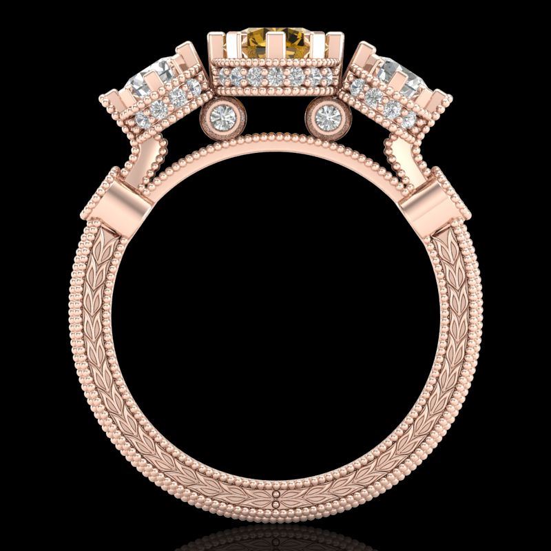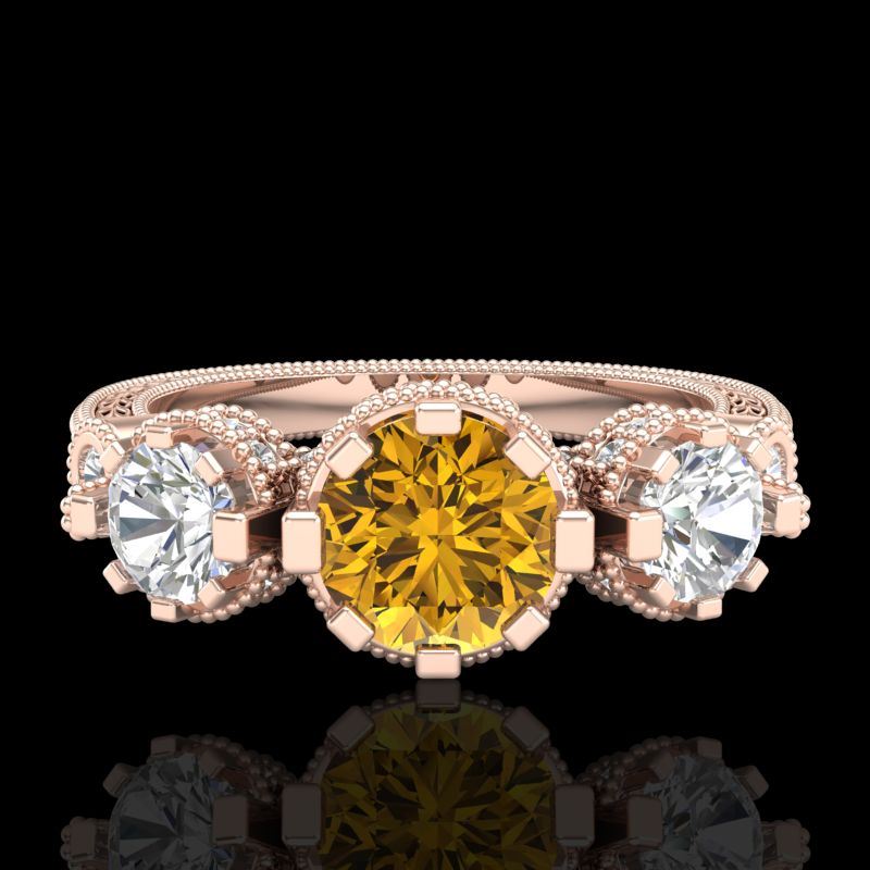 REF-227W3F -37883 ---- 1.75 CTW Intense Fancy Yellow Diamond Art Deco 3 Stone Ring 18K Rose Gold ---- Luxury Designer Brand 3 stone ring Appraised at $13,750 Certificate Number US37883 18k Rose gold, 3 stone ring Size is 7, 3 stone ring measuring approx. Uniform, weighing in total approx. 6.7 grams. Made in the USA and is stamped 18k, Main stone 0.77 carat total weight containing 1 pieces of Intense Fancy Yellow color with SI quality Round shape cut Diamond , Stone #2 0.53 carat total weight containing 2 pieces of H-I color with VS/SI quality Round shape cut Diamond , Stone #3 0.45 carat total weight containing 36 pieces of G-H color with VS/SI quality Round shape cut Diamond
