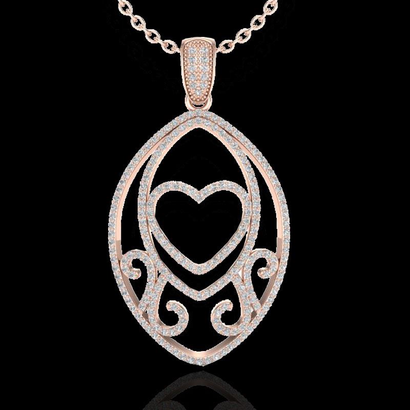 REF-170H5A -22589 ---- 1.75 CTW Micro Pave VS/SI Diamond Designer Heart Necklace 14K Rose Gold ---- Luxury Designer Brand Necklace Appraised at $9,400 Certificate Number US22589 14k Rose gold, Necklace Size is 16 Inches, Necklace measuring approx. 1" x 1 1/4" , weighing in total approx. 12.4 grams. Made in the USA and is stamped 14k, Main stone 1.75 carat total weight containing 214 pieces of H-J color with VS/SI quality Round shape cut Diamond , Stone #2 carat total weight containing pieces of color with quality shape cut
