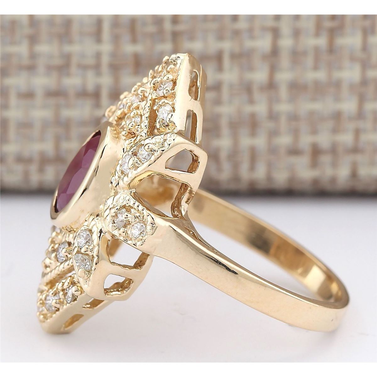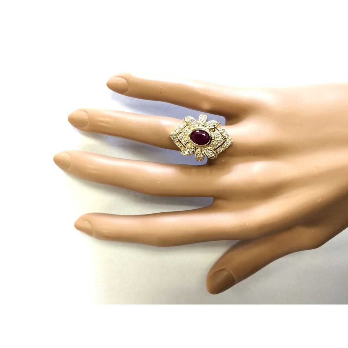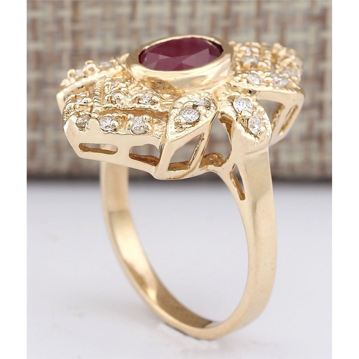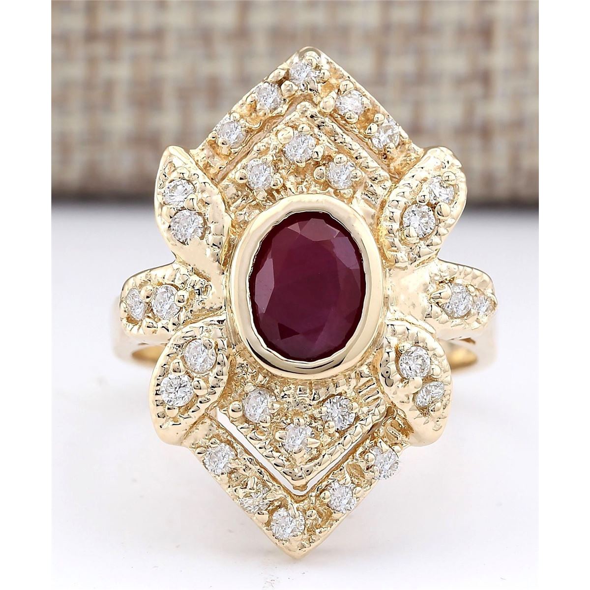 Stamped: 14K Ring Size: 7.5 Total Ring Weight: 7.1 Grams Diamond Weight: Total natural diamond weight is .50carat. SI1-SI2 clarity / G-H color Gemstone Weight: Total Natural Ruby Weight is 1.25ctw (Measures: 9.45x7.65mm)No Glass Or Led,Heated only Main Stone Color: Red Face Measures: 25.73x18.88mm SKU: [703274]