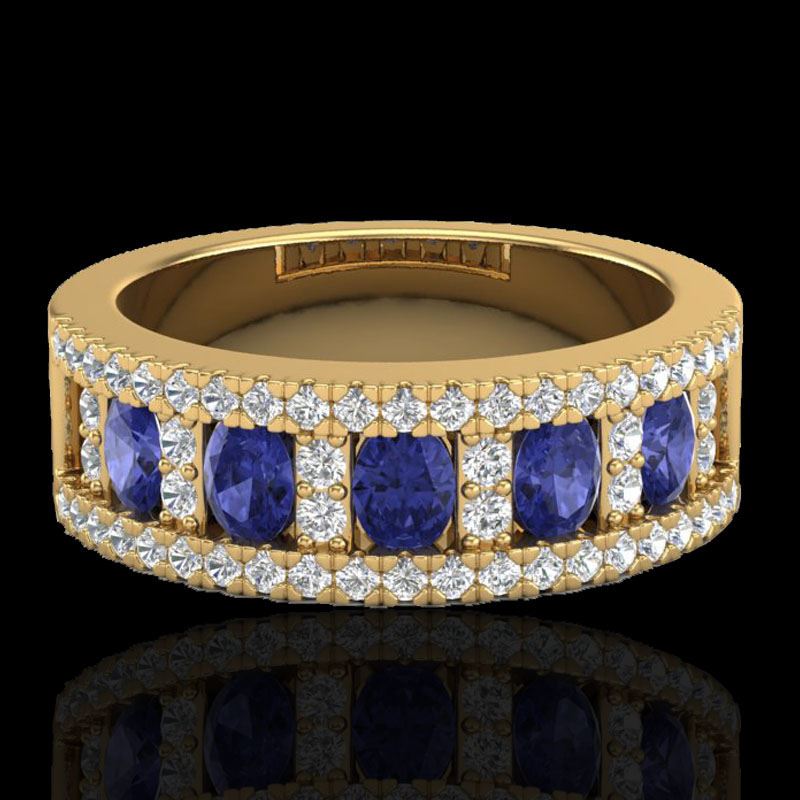 1.75 CTW Tanzanite & Micro Pave VS/SI Diamond Inspired Ring 10K Yellow Gold ---- Luxury Designer Brand Ring Appraised Retail Price at $4,600 ---- SKU Number US20832 10k Yellow gold Ring Size is 7, Ring measuring approx. 3/8 " X1 ", weighing in total approx. 4.4 grams. Made in the USA and is stamped 10k, Main stone 1.11 carat total weight containing 5 pieces of Intense Violet Blue color with AAA quality Oval shape cut Tanzanite , Stone #2 0.64 carat total weight containing 50 pieces of H-I color with VS/SI quality Round shape cut