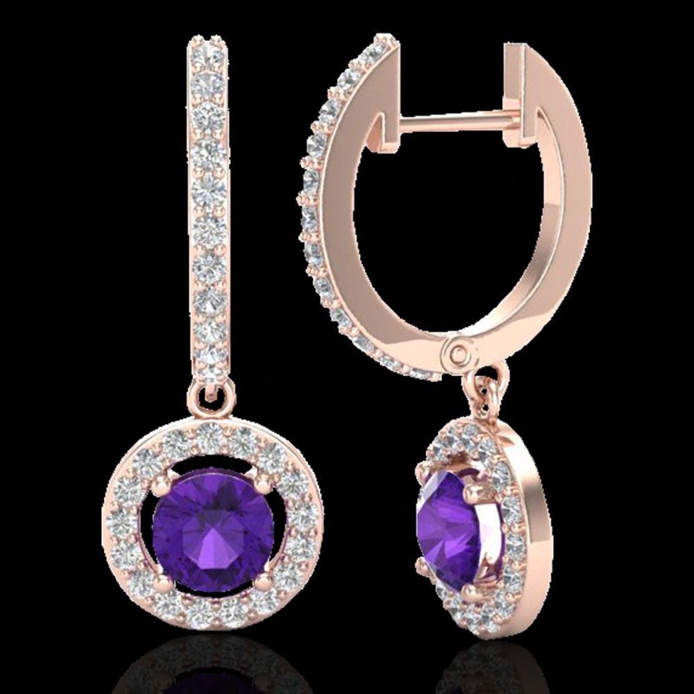 REF-76H4R - SKU: 23246 ---- 1.75 ctw Amethyst & Micro Pave VS/SI Diamond Earrings 14k Rose Gold