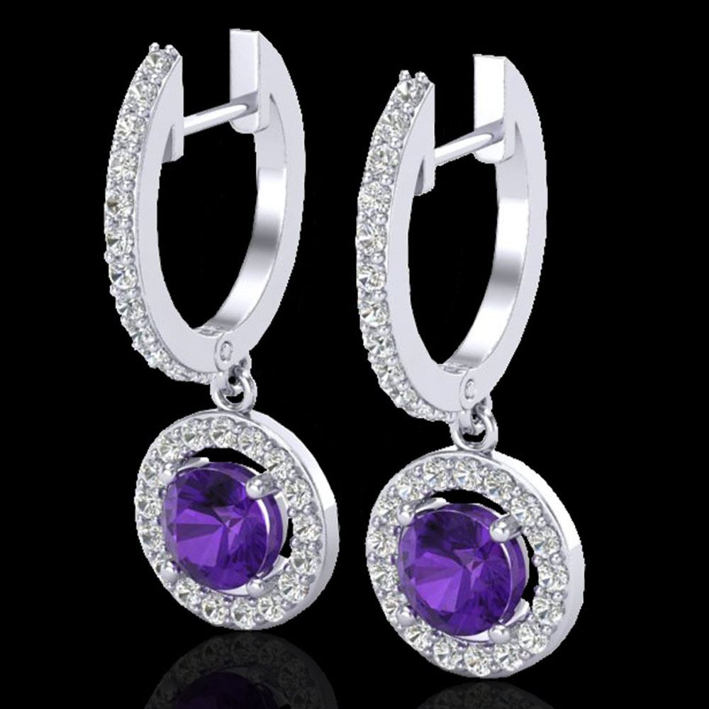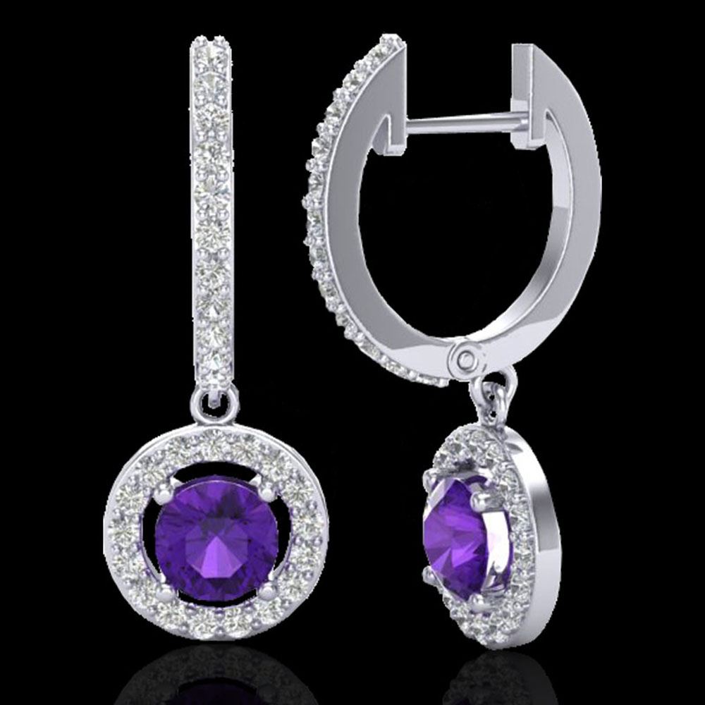 REF-86A2N - SKU: 23245 ---- 1.75 ctw Amethyst & Micro Pave VS/SI Diamond Earrings 18k White Gold
