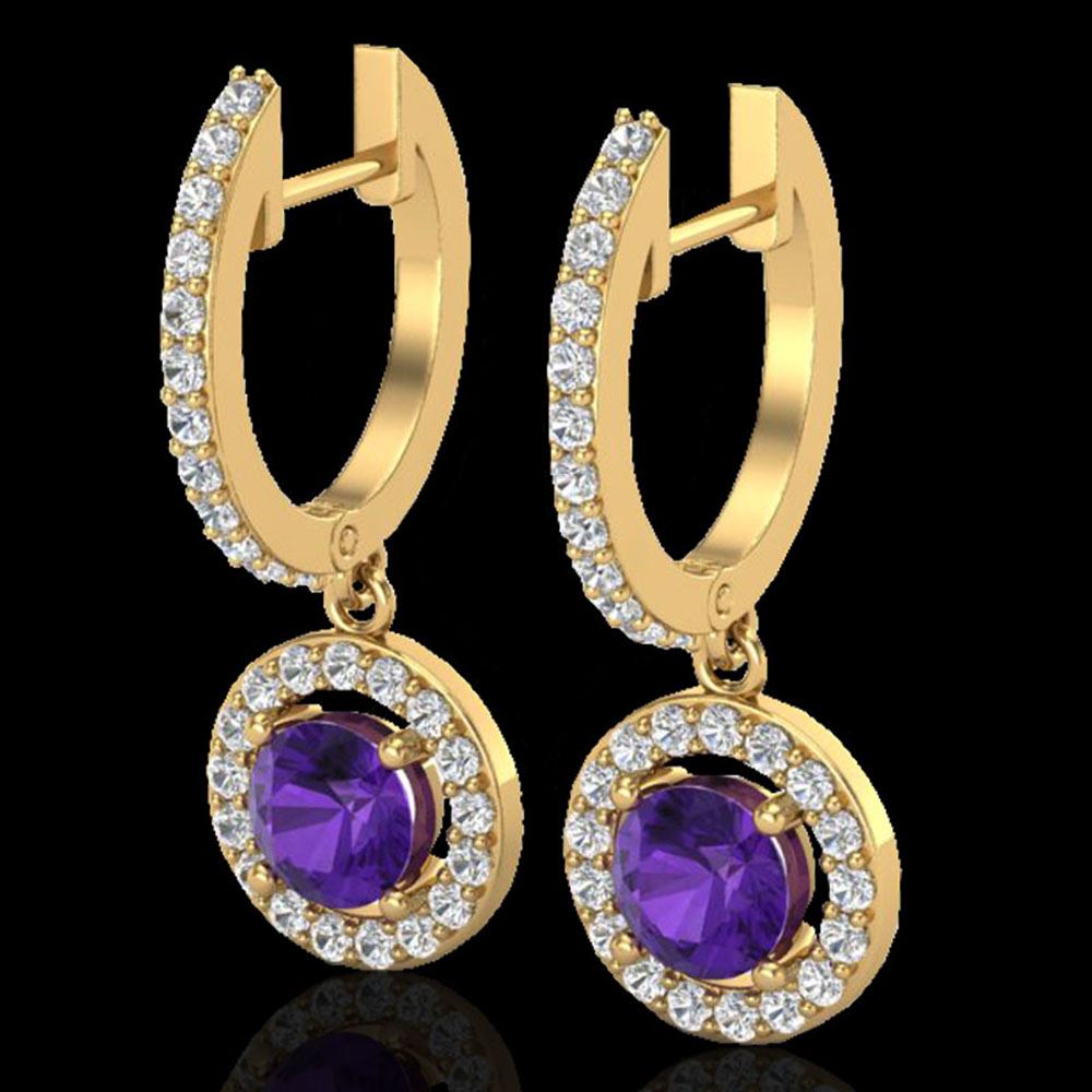 SKU: 23247 ---- 1.75 ctw Amethyst & Micro Pave VS/SI Diamond Earrings 18k Yellow Gold