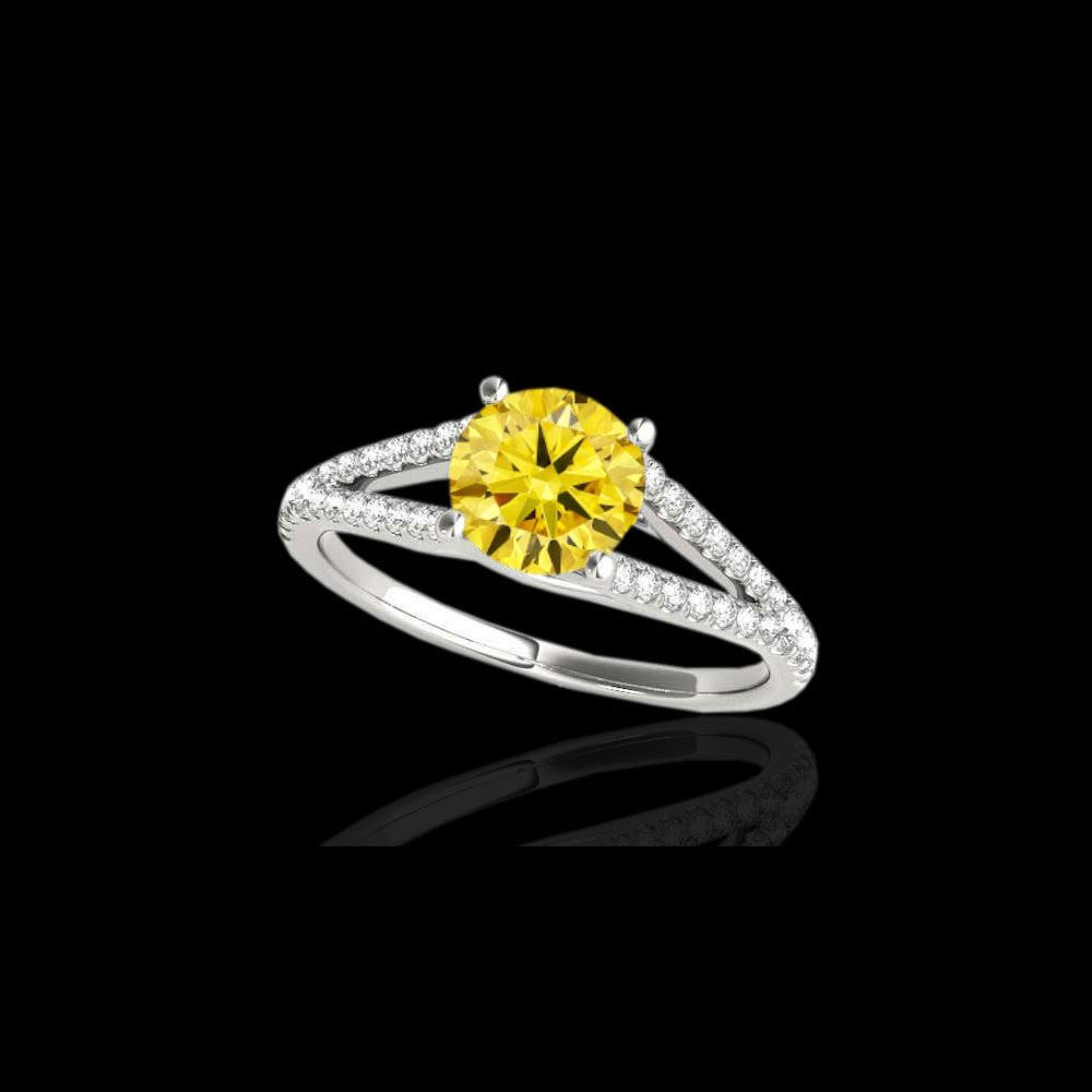 1.75 ctw Certified SI/I Fancy Intense Yellow Diamond Ring 10K White Gold