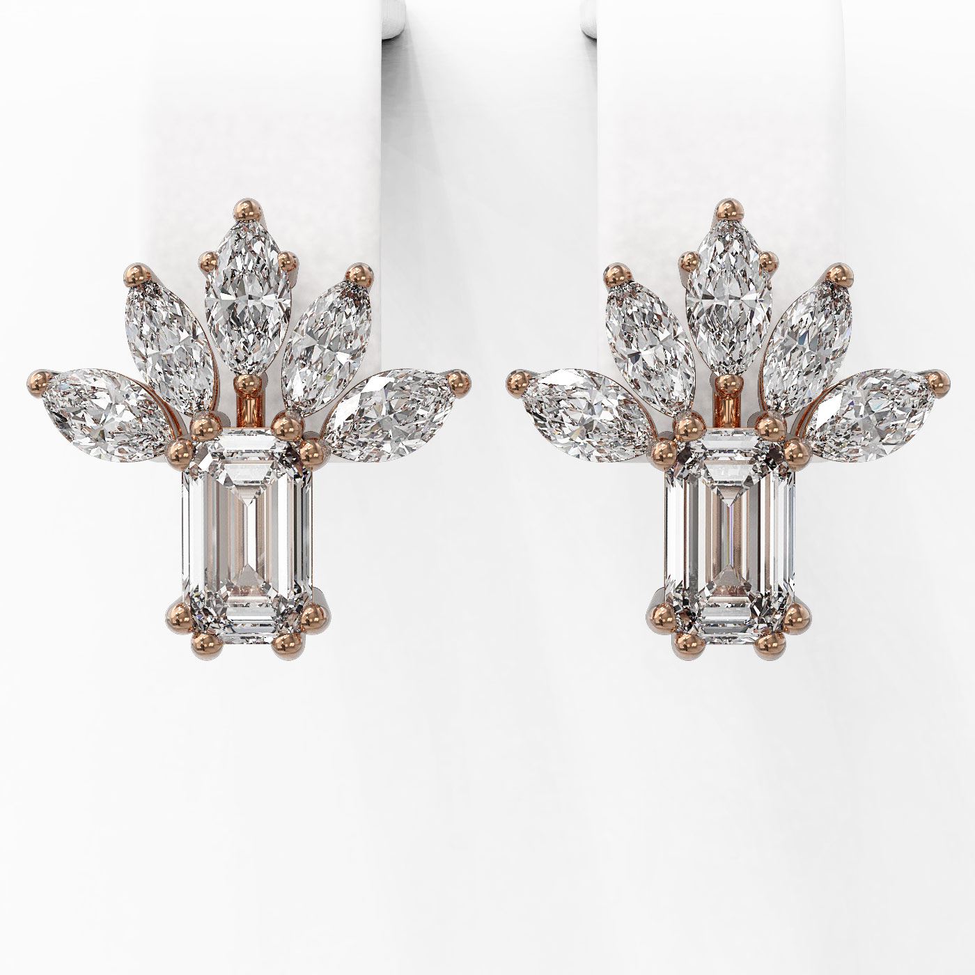 REF-204K8Y - SKU: 48976 ---- 1.75 ctw Emerald Cut Diamond Designer Earrings 18K Rose Gold