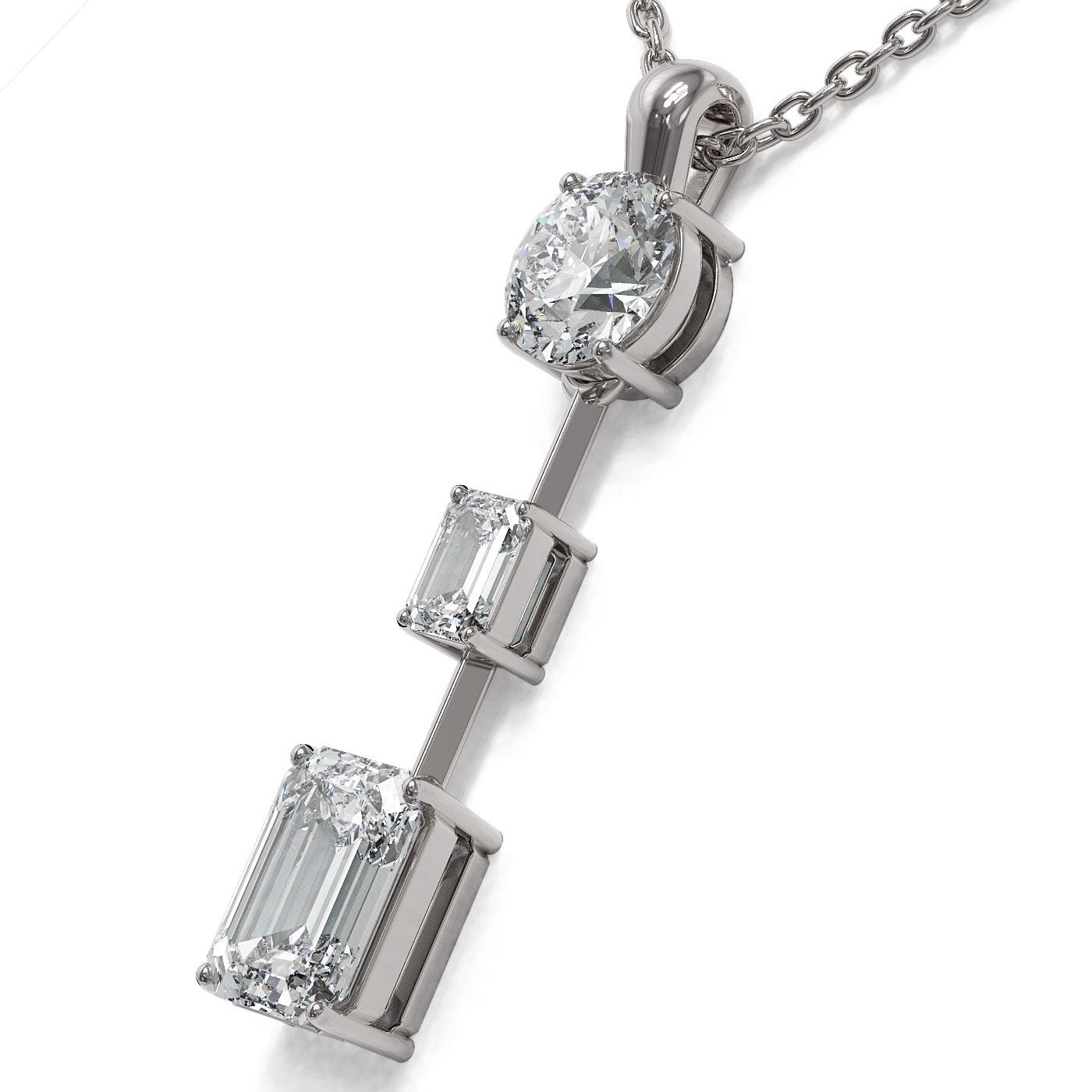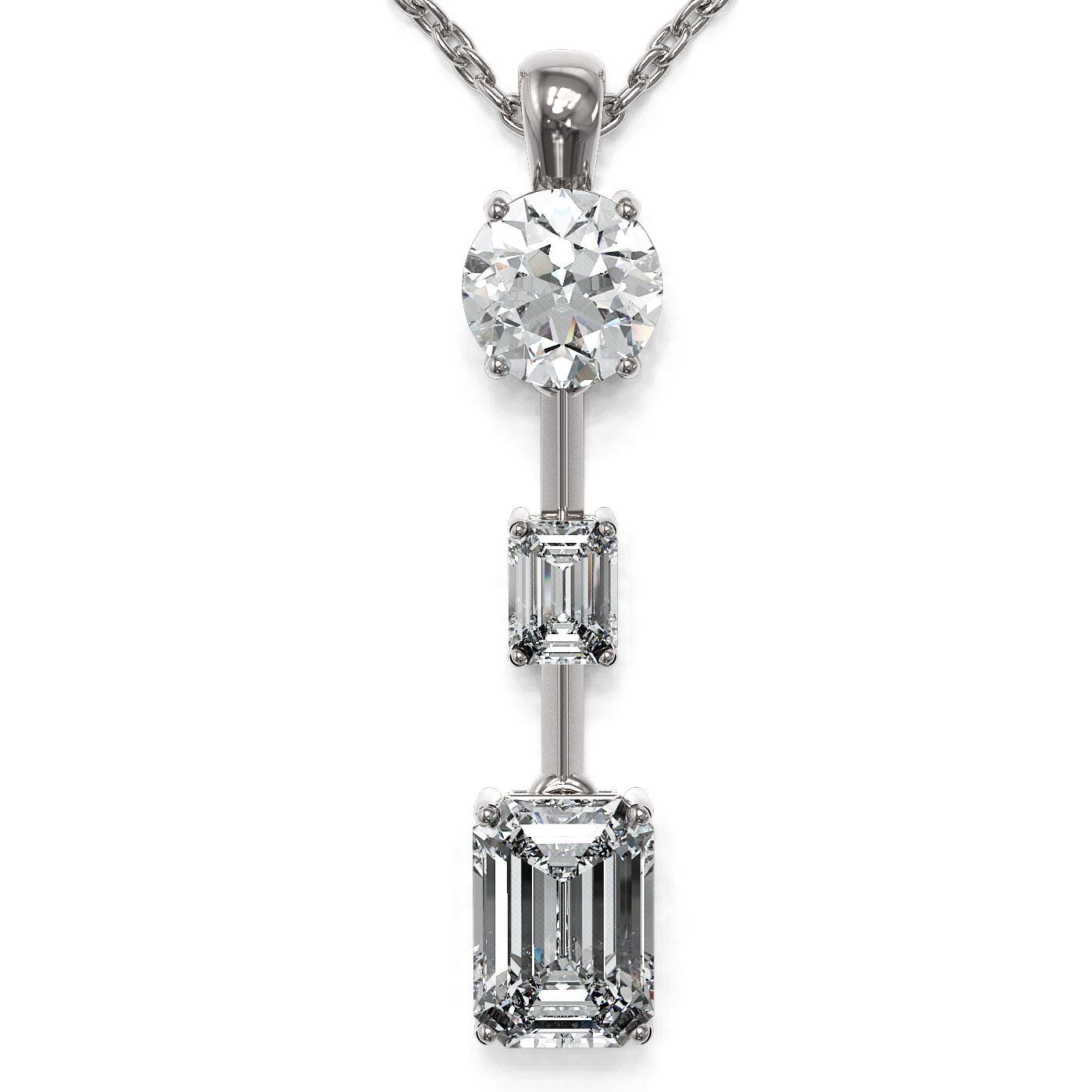 REF-454H2R - SKU: 48624 ---- 1.75 ctw Emerald Cut Diamond Designer Necklace 18K White Gold