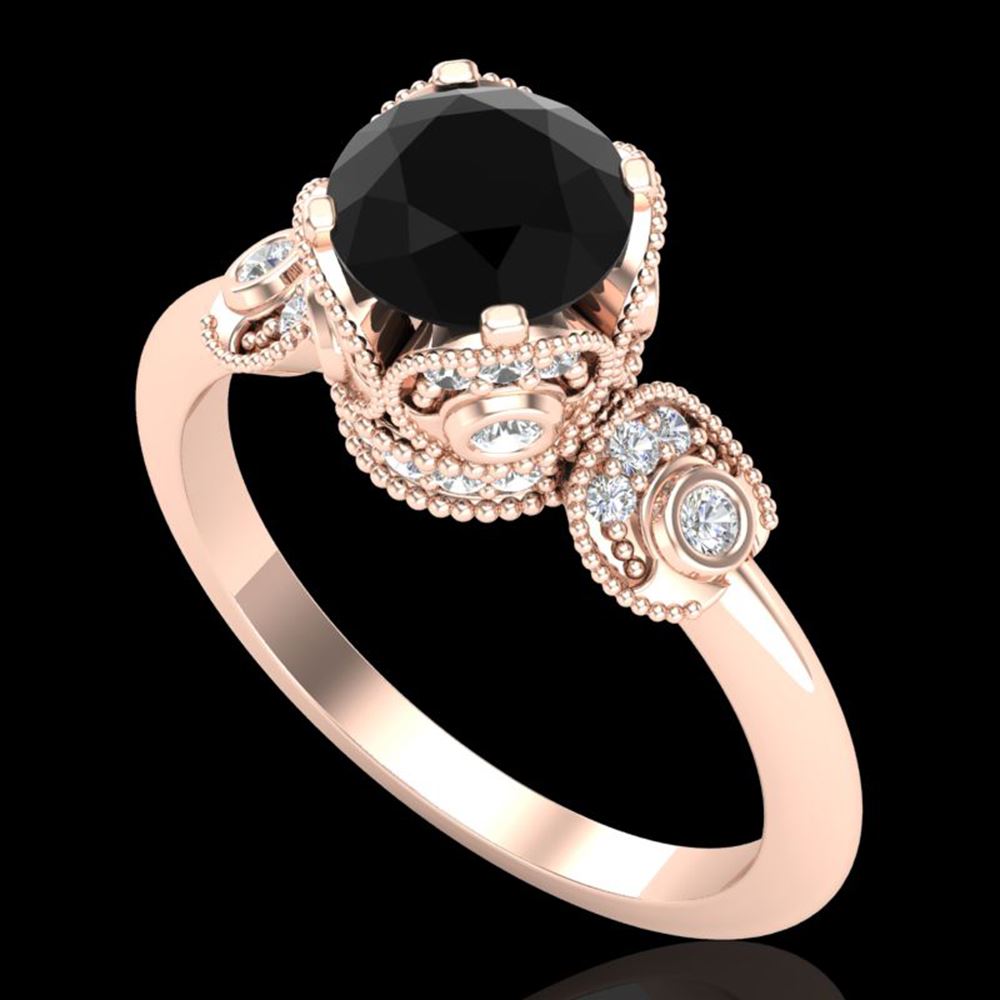 REF-134X5A - SKU: 37402 ---- 1.75 ctw Fancy Black Diamond Engagment Art Deco Ring 18k Rose Gold