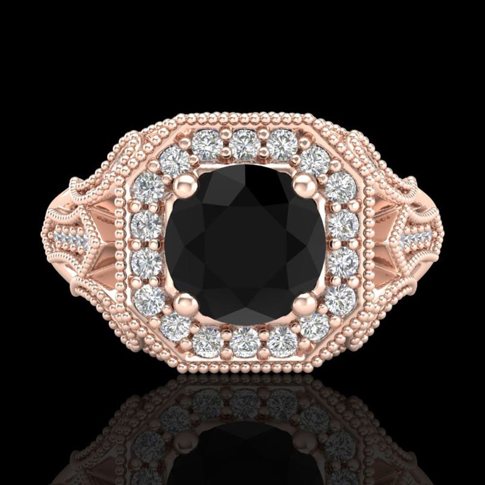 REF-136F4M - SKU: 38277 ---- 1.75 ctw Fancy Black Diamond Engagment Art Deco Ring 18k Rose Gold