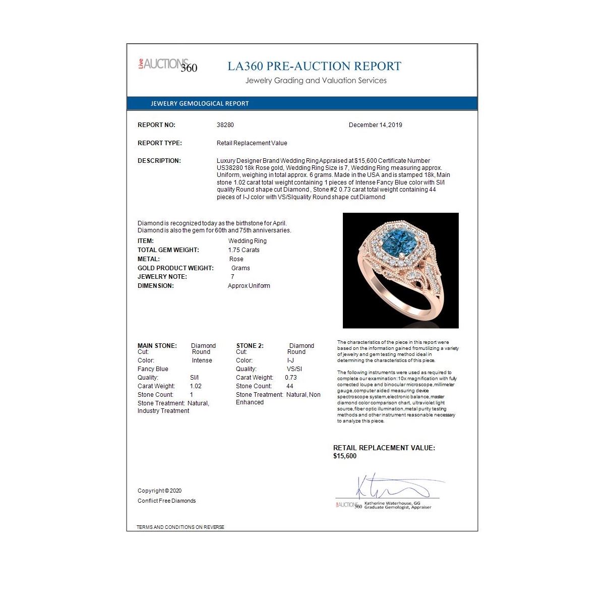 REF-236F4M - SKU: 38280 ---- 1.75 ctw Fancy Intense Blue Diamond Art Deco Ring 18k Rose Gold