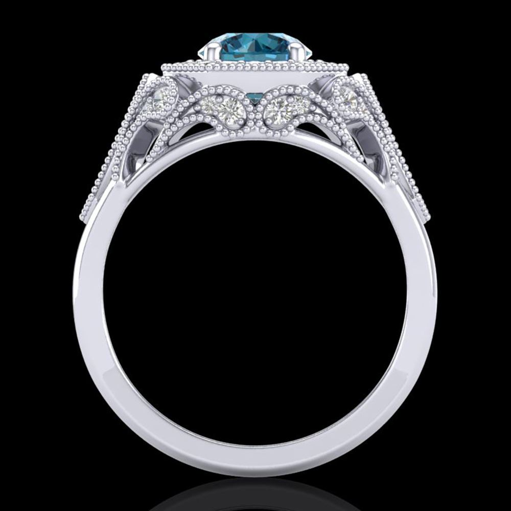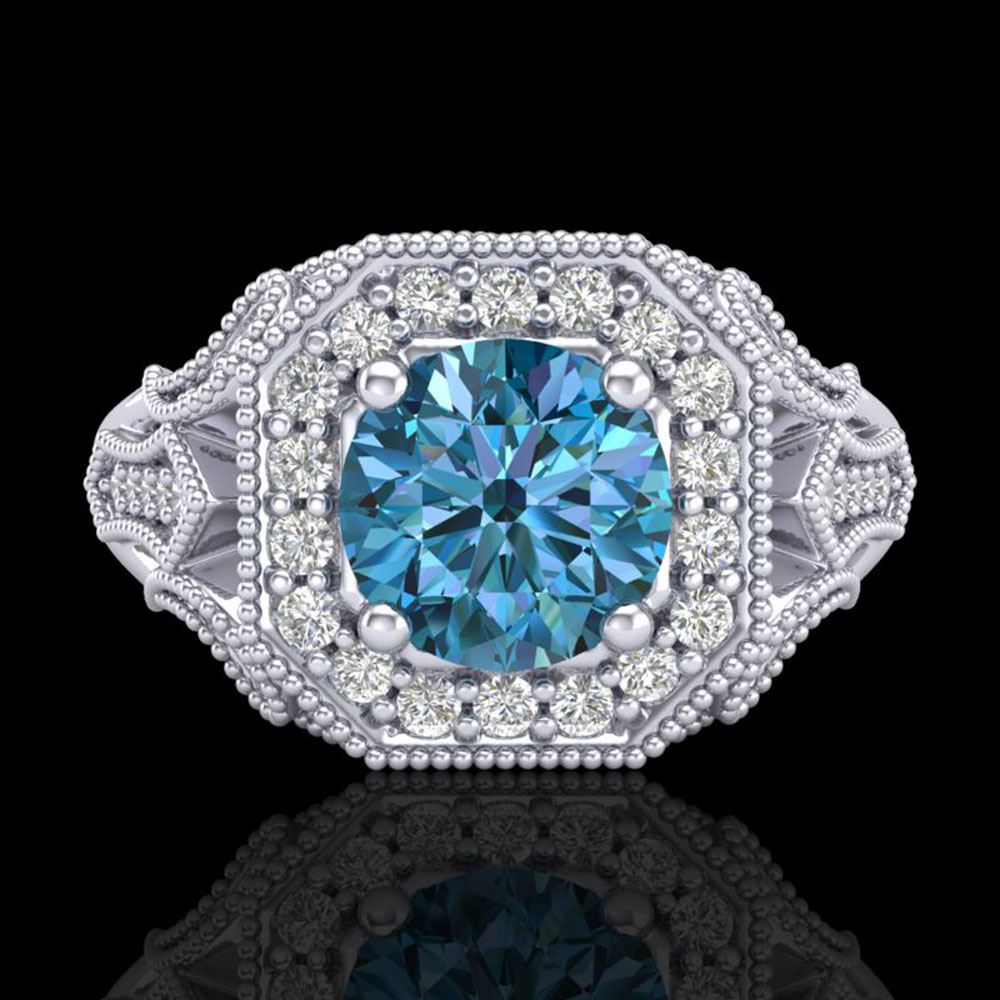 REF-236A4N - SKU: 38279 ---- 1.75 ctw Fancy Intense Blue Diamond Art Deco Ring 18k White Gold