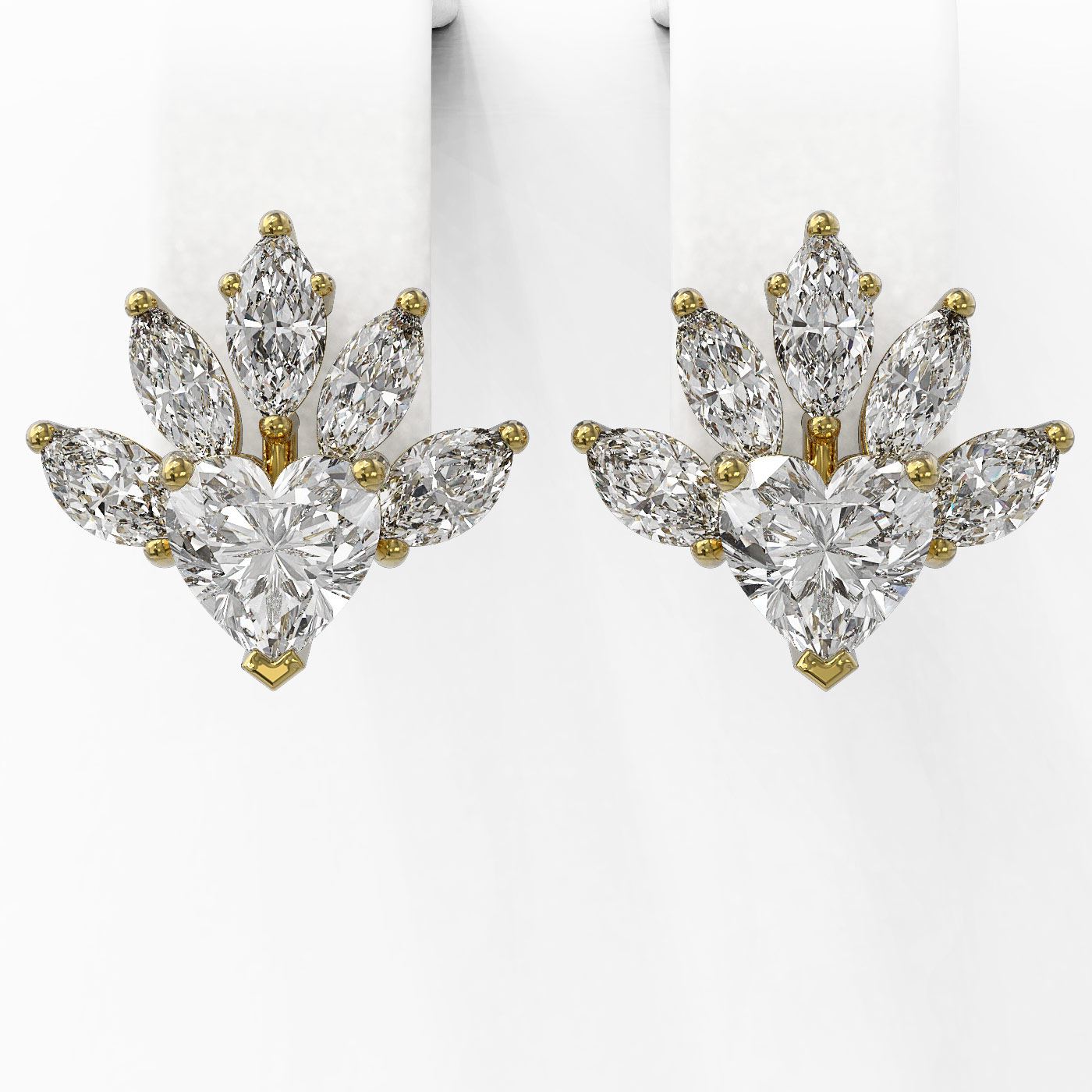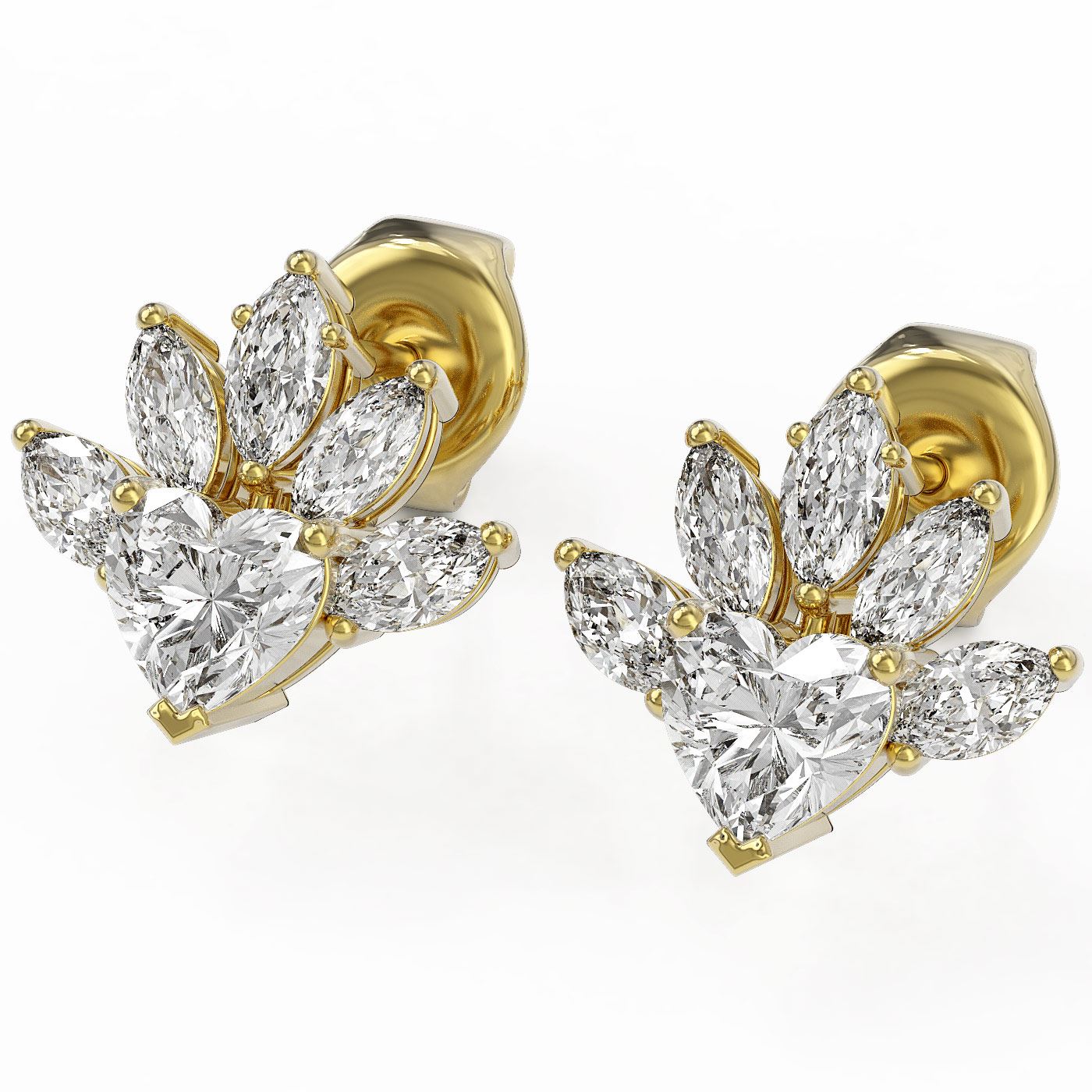 REF-204M8G - SKU: 48983 ---- 1.75 ctw Heart Diamond Designer Earrings 18K Yellow Gold