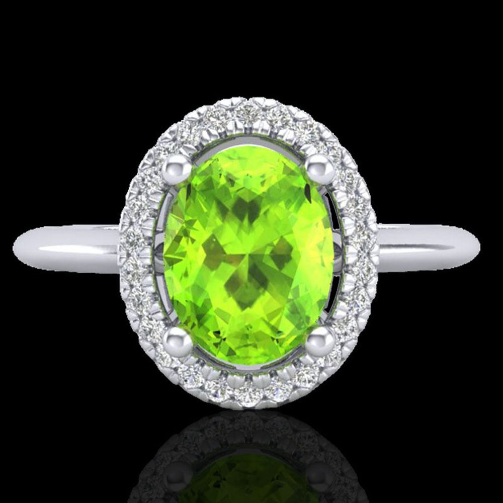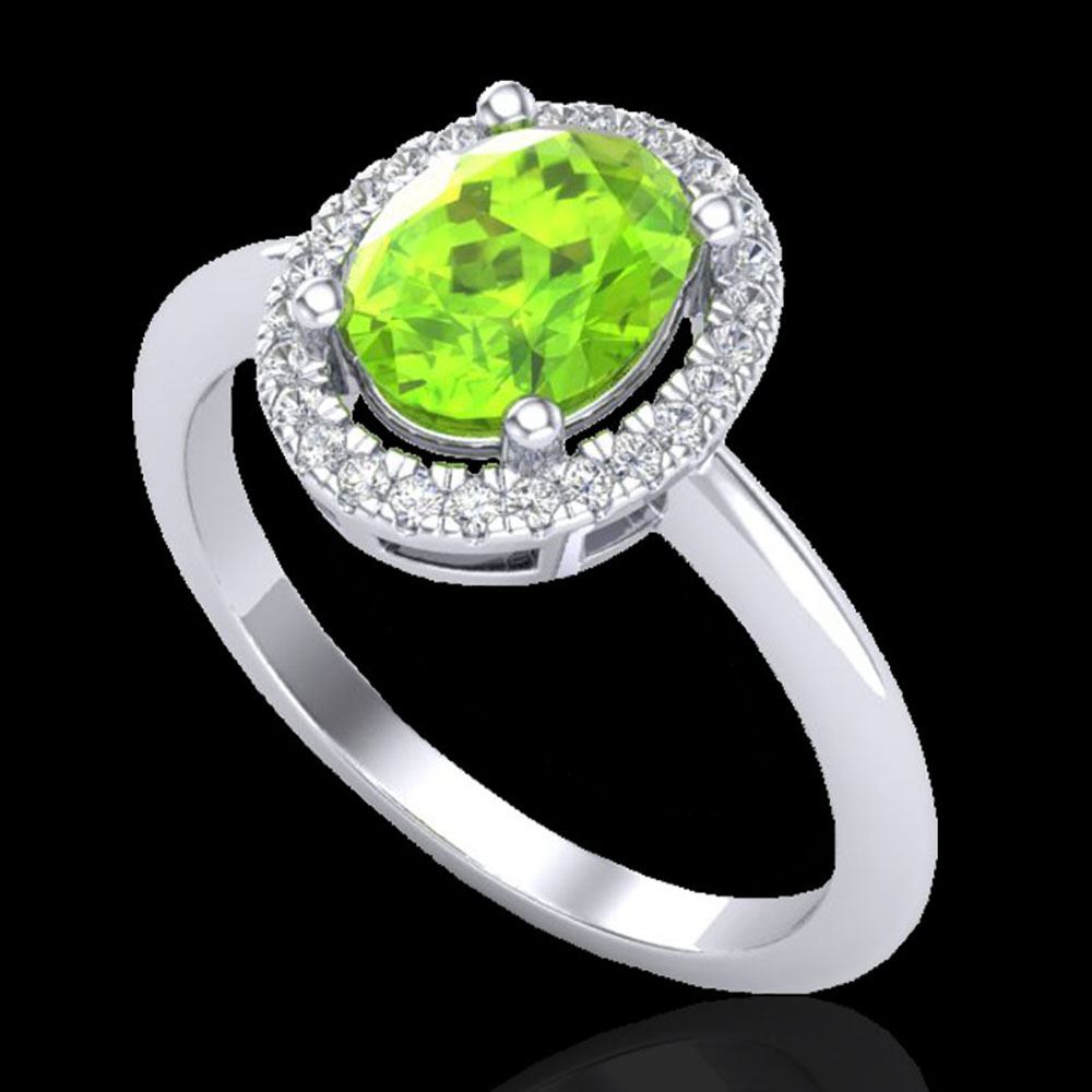REF-39X8A - SKU: 21016 ---- 1.75 ctw Peridot & Micro VS/SI Diamond Ring Halo 18k White Gold