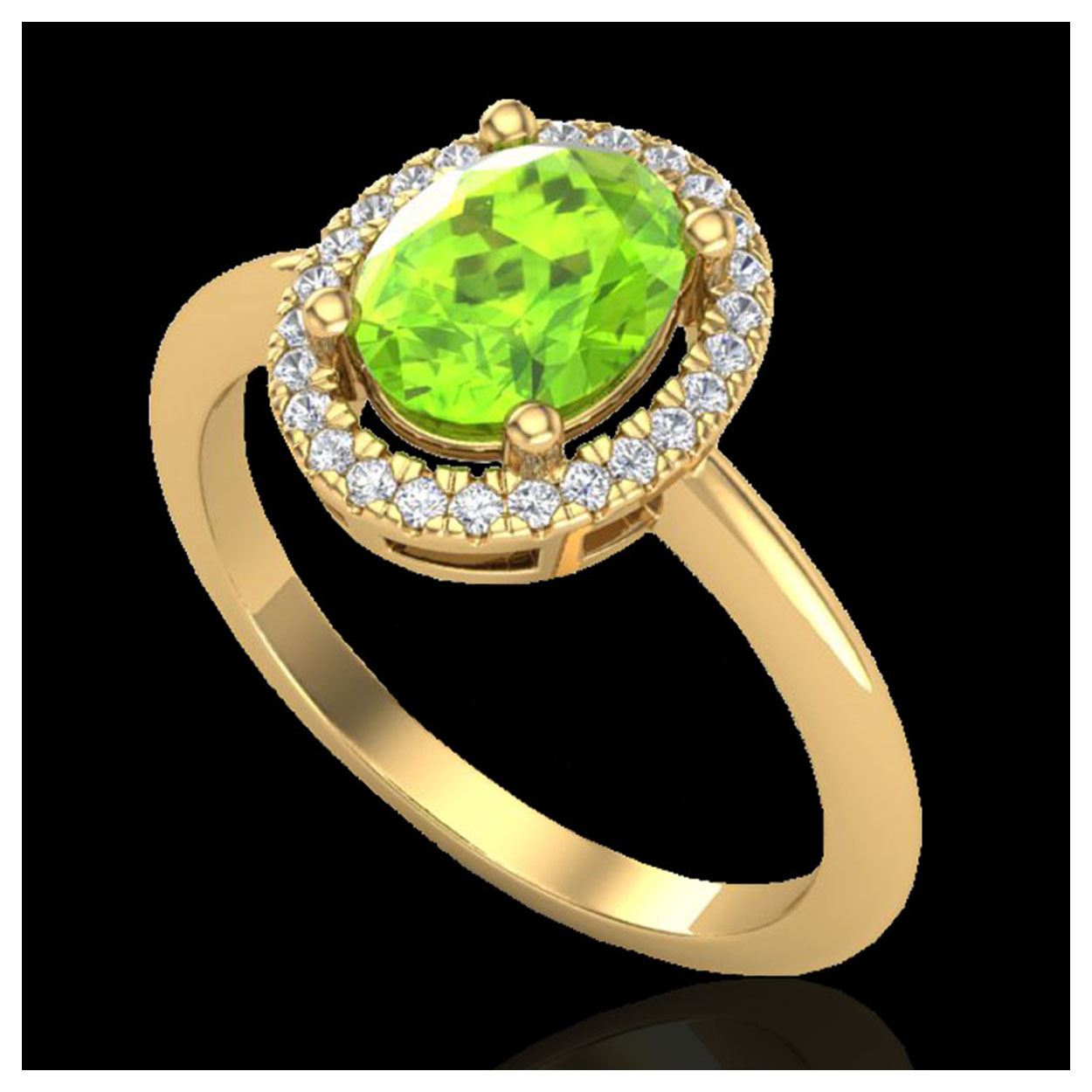 1.75 ctw Peridot & VS/SI Diamond Ring Halo 18K Yellow Gold