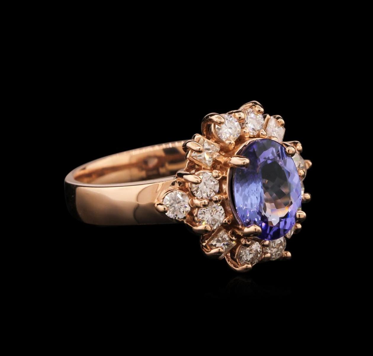One ring featuring: 14KT rose gold weighing 4.78 grams containing one tanzanite center stone with a total weight of 1.75ct and 14 diamonds with a total weight of 0.77ct.