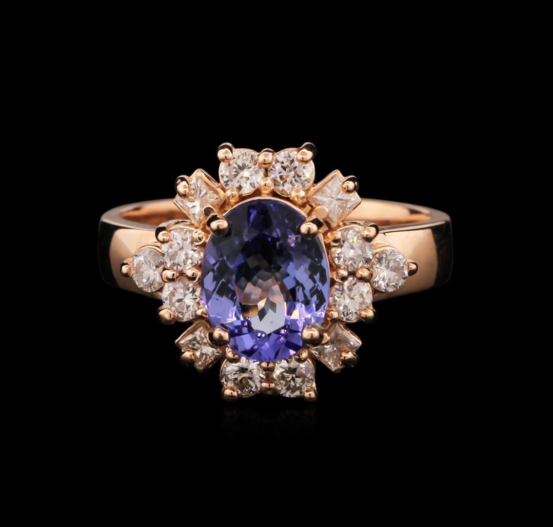 One ring featuring: 14KT rose gold weighing 4.78 grams containing one tanzanite center stone with a total weight of 1.75ct and 14 diamonds with a total weight of 0.77ct.